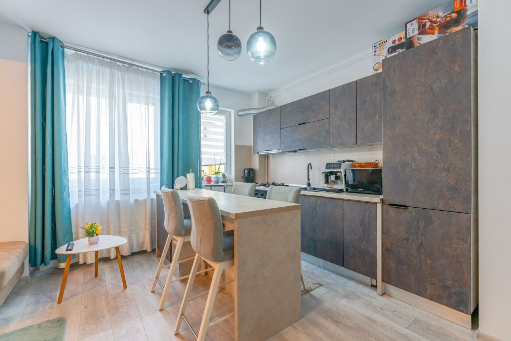 Acasă nu înseamnă doar spațiul delimitat de pereții apartamentului, ci și sentimentul de apartenență la o comunitate. Vă propunem spre achiziție un studio situat în inima cartierului Tractorul, pe strada Ioan Popasu, într-un imobil finalizat în anul 2020. Această proprietate a fost gândită pentru cei care apreciază interacțiunea socială și confortul modern, oferind acces la o terasă amenajată exclusiv pentru locatari – un spațiu dedicat relaxării și formării unor legături durabile între vecini. DETALII TEHNICE ȘI COMPARTIMENTARE Locuința este situată la etajul 3 din 5, într-un imobil dotat cu lift, având o suprafață utilă de 46 mp. Compartimentarea este una practică, fiind formată din living și bucătărie integrate într-un spațiu deschis, un dormitor separat, baie și un hol de acces. DOTĂRI ȘI FINISAJE Apartamentul se vinde complet mobilat și utilat, conform fotografiilor de prezentare (cu excepția obiectelor personale și a televizorului din living), fiind pregătit pentru mutare imediată. Încălzirea și apa calda menajeră sunt asigurate prin centrala termică a blocului, cu distribuție prin calorifere, asigurând un randament termic constant. Locuința beneficiază de toate utilitățile orașului, inclusiv conexiune prin fibră optică pentru internet de mare viteză. LOCALIZARE ȘI ACCESIBILITATE Cartierul Tractorul reprezintă în prezent cea mai dinamică zonă a Brașovului, un pol de dezvoltare care îmbină infrastructura nouă cu proximitatea față de punctele de interes major. Stația de autobuz se află la doar 250 m distanță, asigurând legătura rapidă cu restul orașului. În proximitate regăsim facilități esențiale: Mall Coresi la 1 km, grădiniță la 1 km, școală gimnazială la 1,5 km, precum și supermarketuri situate la bulevardul 13 Decembrie sau magazine de proximitate la câteva minute de mers pe jos. CONDIȚII DE ACHIZIȚIE Vânzătorul este persoană fizică, aspect ce reprezintă un avantaj financiar major: prețul nu este purtător de TVA, ceea ce simplifică și optimizează bugetul de achiziție. - Comision: 0% pentru cumpărător. - Finanțare: Se acceptă plata prin surse proprii sau prin credit ipotecar. Vizionările se pot stabili în baza unei programări telefonice.
