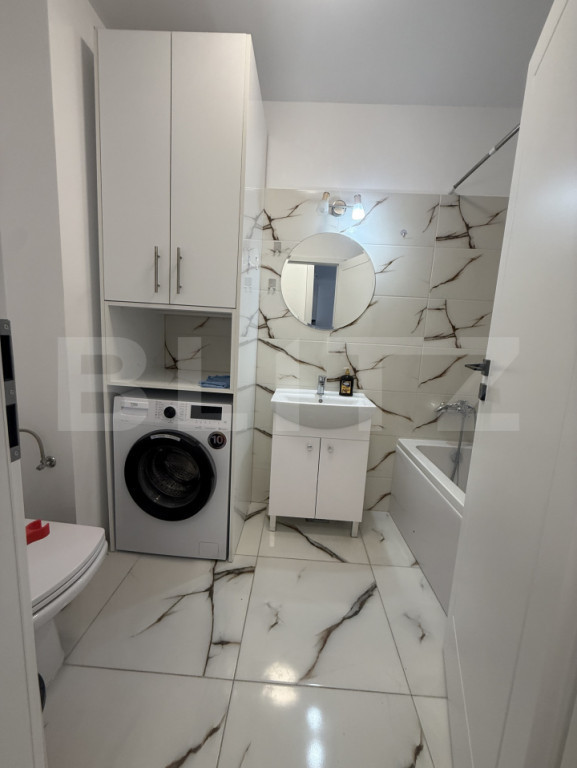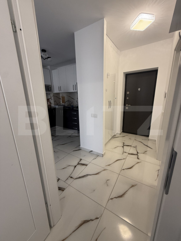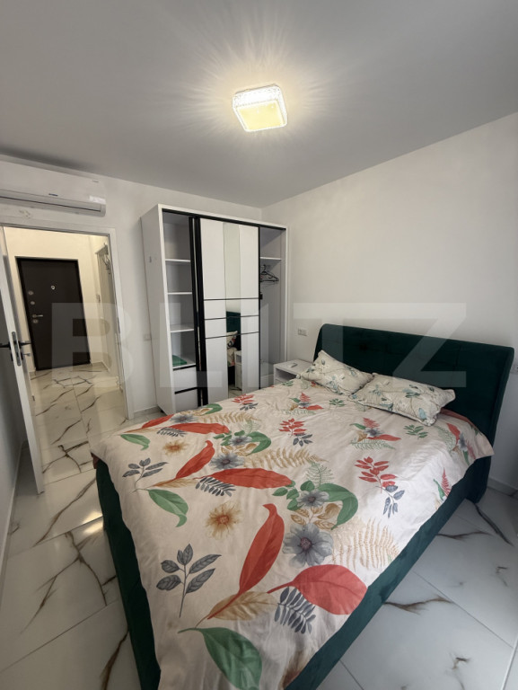 Blitz oferă spre închiriere un studio modern, situat în complexul Class Park, la etajul 4 al unui imobil dotat cu lift. Proprietatea impresionează prin finisaje de calitate, design simplu și elegant, fiind ideală pentru o persoană sau un cuplu. Studio-ul este complet mobilat și utilat, pregătit pentru mutare imediată. Zona de living este luminoasă și bine organizată, cu canapea confortabilă, spațiu de relaxare și acces către o terasă generoasă, perfectă pentru momentele de liniște. Bucătăria open-space este complet echipată, oferind tot ce ai nevoie pentru confortul zilnic. Zona de dormit este amenajată cu pat matrimonial și spații de depozitare, creând un ambient plăcut și practic. Baia este modernă, dotată cu cadă și mașină de spălat integrată în mobilier. Holul dispune de spații suplimentare de depozitare, iar finisajele moderne și gresia tip marmură completează aspectul elegant al locuinței. Terasa reprezintă un mare plus, oferind un spațiu exterior ideal pentru relaxare. ✔️ Dotări & avantaje: Etaj 4 / imobil cu lift Terasă spațioasă Complet mobilat și utilat Aer condiționat Mașină de spălat Bucătărie echipată Finisaje moderne Cod ofertă / ID BLITZ: P167292 Id intern: P167292