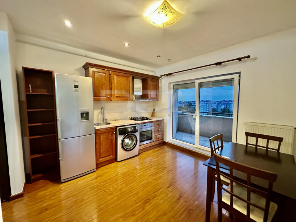 Studio modern la etajul 8/8 complet mobilat și utilat – perfect pentru locuit sau ca investiție.