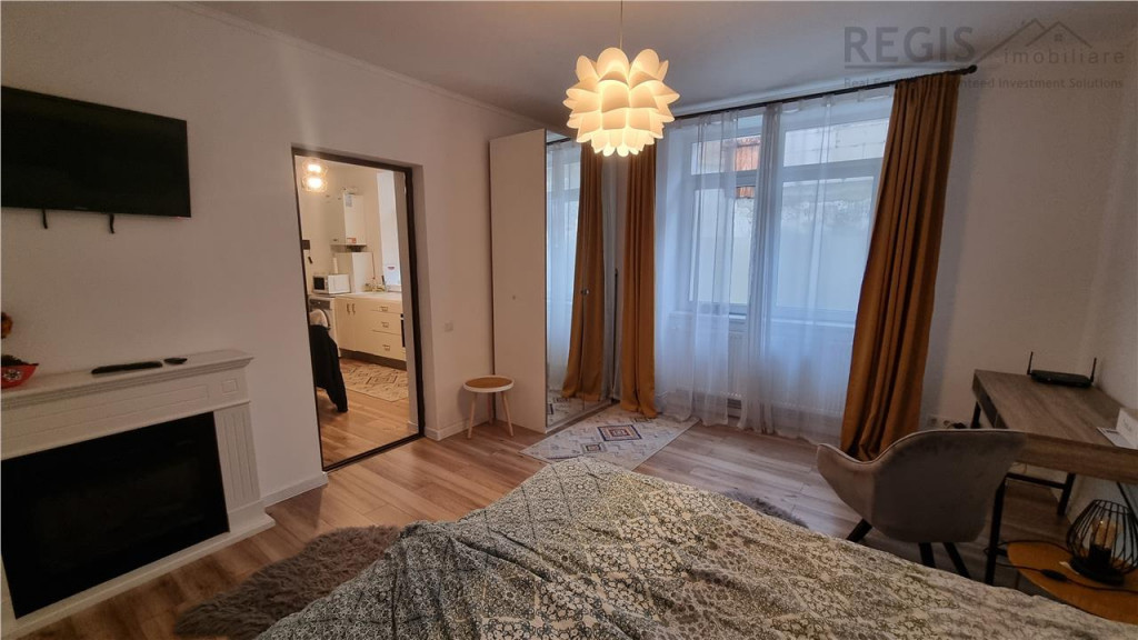 Studioul este complet mobilat si utilat modern , izolat , cu costuri minime de intretinere , pozitionat cemtral , la 10 minute pe jos de Piata Sfatului , in apropiere de statii de autobuz , supermarket , centre univesitare , parcuri de agrement si Centrul Istoric .