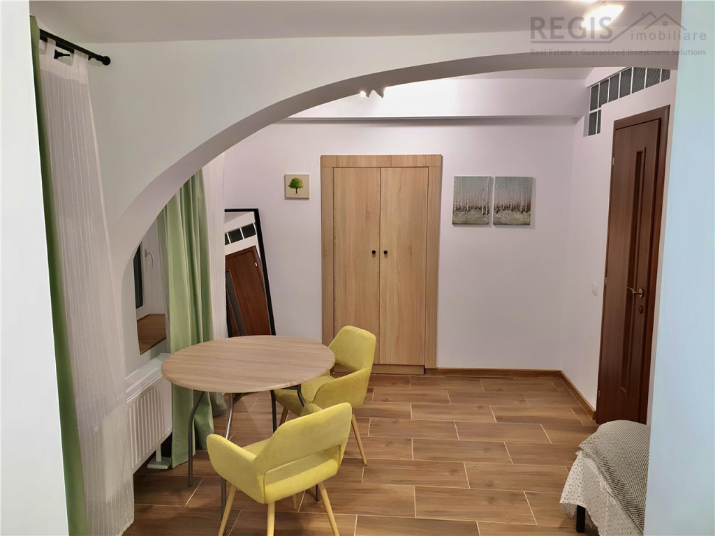 ID intern: 6631 REGIS Imobiliare va propune spre inchiriere un studio intr-o zona centrala. Acesta se afla pe str. Iuliu Maniu 24 la 950 m de Piata Sfatului. Accesul se face din strada printr-o curte interioara securizata cu interfon. Detalii: 1 camera de 28 mp utili la parter cu utilitati contorizate separat (curent, gaz si apa) Compartimentare: camera, bucatarie, hol si baie Utilat cu: centrala proprie, plita, cuptor cu microunde, hota, frigider, masina de spalat rufe si TV Zona: Piata Sfatului (950 m), statie autobuz (250 m), supermarket Lidl (350 m), Parcul Nicolae Titulescu (500 m), Sala Dr.Fit Gym (600 m), Universitatea Transilvania si American Hotel Academy (180 m si 1 km), Easy Box (500 m) Inchirierea se realizeaza prin plata de 1 luna chirie, 1 luna garantie si comision agentie. Comisionul este 50% TVA din valoarea unei chirii. Daca anuntul v-a starnit un interes, nu ezitati sa ma contactati!