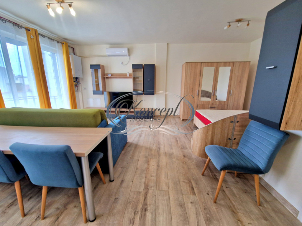 Koncept Imobiliare va ofera spre inchiriere un studio modern situat in zona semicentrala, in apropiere de The Office, o locatie apreciata pentru accesibilitatea rapida catre centrul orasului, magazine, restaurante si zone verzi. Proprietatea este amplasata la etajul 2 al unui imobil nou cu 4 niveluri, dotat cu lift, beneficiind de orientare sudica si vedere spre curtea interioara, ceea ce asigura un ambient luminos si ferit de zgomotul urban. Studio-ul dispune de o suprafata utila de 34 mp si este compartimentat open space, inteligent organizat in zona de dormit, zona de relaxare si bucatarie cu loc de servit masa, completata de o baie cu cada si un balcon deschis de aproximativ 2 mp. Se inchiriaza complet mobilat si utilat, fiind echipat cu masina de spalat rufe, frigider, plita pe gaz, cuptor electric, hota, aer conditionat si televizor. Confortul termic este asigurat de centrala termica proprie cu incalzire prin pardoseala, completata de calorifer in baie. Printre avantajele proprietatii se remarca amplasarea semicentrala cu acces facil catre punctele de interes major, orientarea sudica ce ofera lumina naturala pe tot parcursul zilei, linistea datorata pozitiei spre curtea interioara, finisajele moderne, eficienta compartimentarii si locul de parcare subteran inclus in pret, un beneficiu rar in zona. Locuinta este ideala pentru o persoana singura sau un cuplu care isi doreste confort, acces rapid catre zona centrala si un stil de viata urban echilibrat, fiind potrivita pentru rezidenta pe termen lung. Pentru informatii suplimentare, programarea unei vizionari sau pentru a afla oferta noastra completa va stam la dispozitie telefonic, prin e-mail sau la sediul agentiei noastre, pe str. Aviator Badescu, nr. 19, Cluj-Napoca. Id intern: P20697
