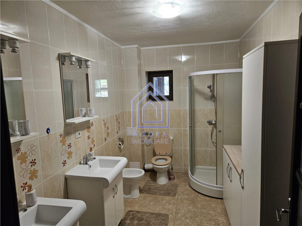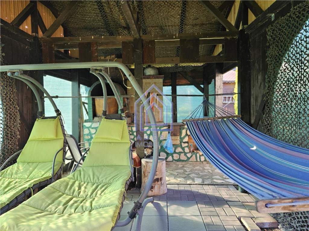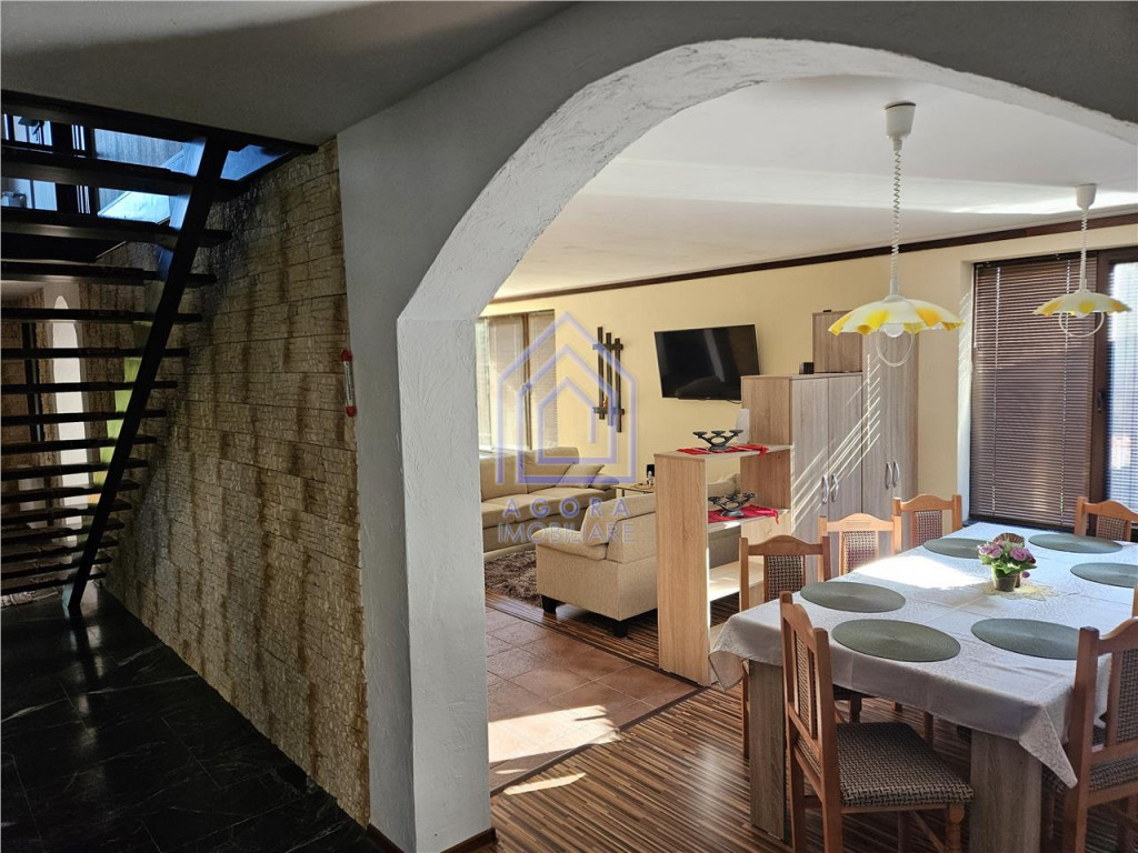 Agora Imobiliare propune la vanzare casa amplasata in mijlocul naturii, la 3 km de centrul Sucevei, intr-o zona foarte linistita , cu drum asfaltat. Proprietatea, unde arhitectura moderna se imbina in mod placut cu elemente rustice, are parter si mansarda , 268 mp utili si 780 mp teren. La parter gasim : - living generos cu semineu, - loc de luat masa ( dining ) - bucatarie complet utilata din care se ajunge in camera tehnica cu centrala pe lemne Viesmann si in garaj, - 2 bai din care una cu dus si bideu , una cu jacuzi, La mansarda sunt: - 2 dormitoare, - un birou care se poate transforma in dormitor, - baie cu cada si bideu, - balcon si loc de joaca copii, - terasa. Alaturi de casa langa terasa se afla un gratar si un loc de relaxare. Apa este de la fantana, curent electric, fosa. Gazul metan este la poarta. Se vinde mobilata si utilata. Un loc superb in care te retragi dupa o zi de munca, te bucuri de liniste si de aerul curat.