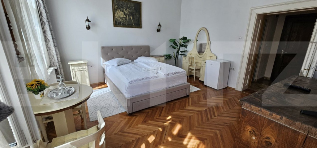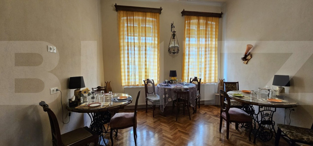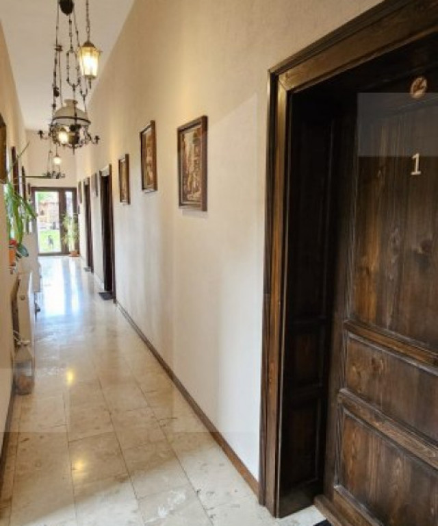 Blitz vă prezintă o oportunitate unică de investiție, o pensiune deosebită, perfectă pentru cei ce doresc să își dezvolte afacerea în domeniul turismului, o afacere gata să fie preluată și continuată cu succes (cu un rating de 9,3 la Booking). Datorită amplasării centrale și facilitățiilor de top, pensiunea este pregatită să ofere un venit stabil. Pensiunea are o suprafată construită de 700 mp , cu regim de înălțime P+ M, și dispune de 8 camere spațioase, ( cu suprafete între 17 mp și 21 mp ) cu 16 locuri de cazare, fiecare cameră având baie proprie cu cabina de duș , asigurând confort și intimitate pentru fiecare oaspete , și toate facilitățile moderne ( internet, televizor cu ecran plat, frigider). Imobilul dispune de o curte interioară amenajată de 500 mp, cu foișor închis și terasă. Capacitate și dotări: - 8 camere spațioase și elegante, fiecare cu finisaje de calitate și parchet din lemn masiv; - 8 băi de lux, amenajate cu marmură și travertin, dotate cu instalații sanitare Grohe; - Living generos, perfect pentru relaxare sau activități comune; - Bucătărie complet utilată și zonă de luat masa; DESIGN interior în stil clasic/rustic cu mobilier din lemn masiv de antichitate. - Foișorul închis are soba de teracotă, poate fi încălzită și iarna. - Loc pentru grătar și cuptor de pizza. - Terasă spațioasă, un loc perfect pentru mese în aer liber sau momente de relaxare. Detalii technice: Parter cu înălțimea de 3,60 m spațiu aerisit și elegant; Mansardă înaltă (2,70 m) și pod cu multiple posibilități de amenajare. Beci din cărămidă. Avantaje: - Poziție centrală, aproape de toate punctele de interes ale orașului; - Finisaje premium și materiale de calitate superioară; - Spații generoase și luminoase, cu un design elegant; Momentan, proprietatea funcționează în regim de pensiune, având un potențial excelent pentru investiție. Preț: - 490 000 € doar cladirea Prețul cu mobilier se discută, dacă clientul vrea să preia și afacerea. Contactează-ne acum pentru mai multe detalii și programează o vizionare! Cod ofertă / ID BLITZ: P145911 Id intern: P145911