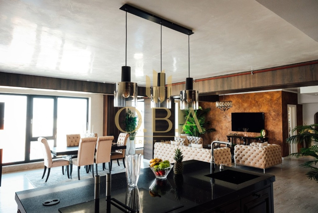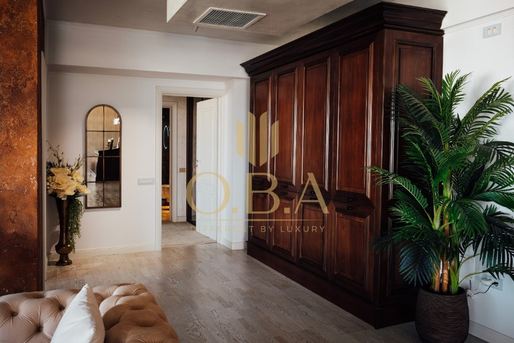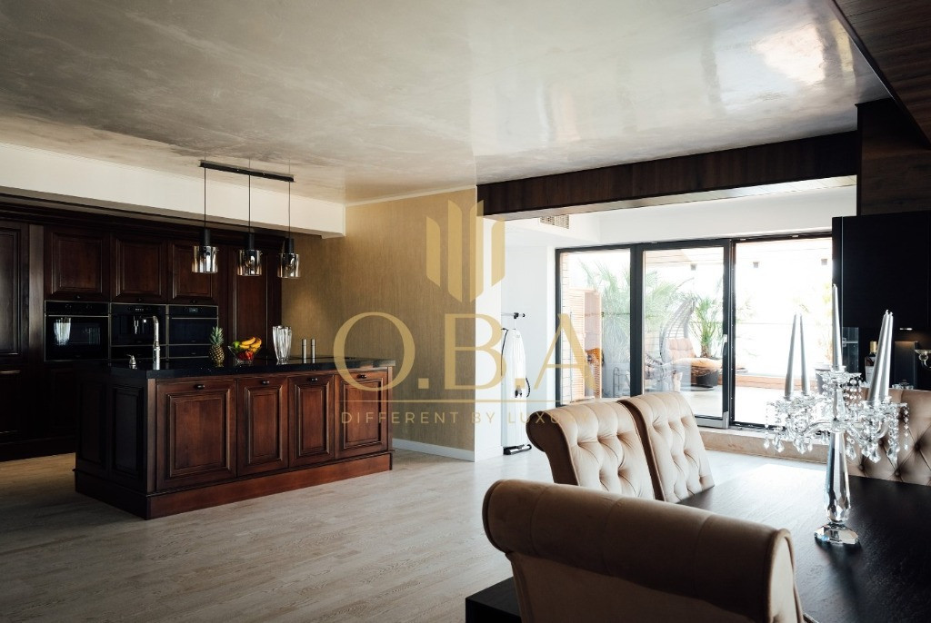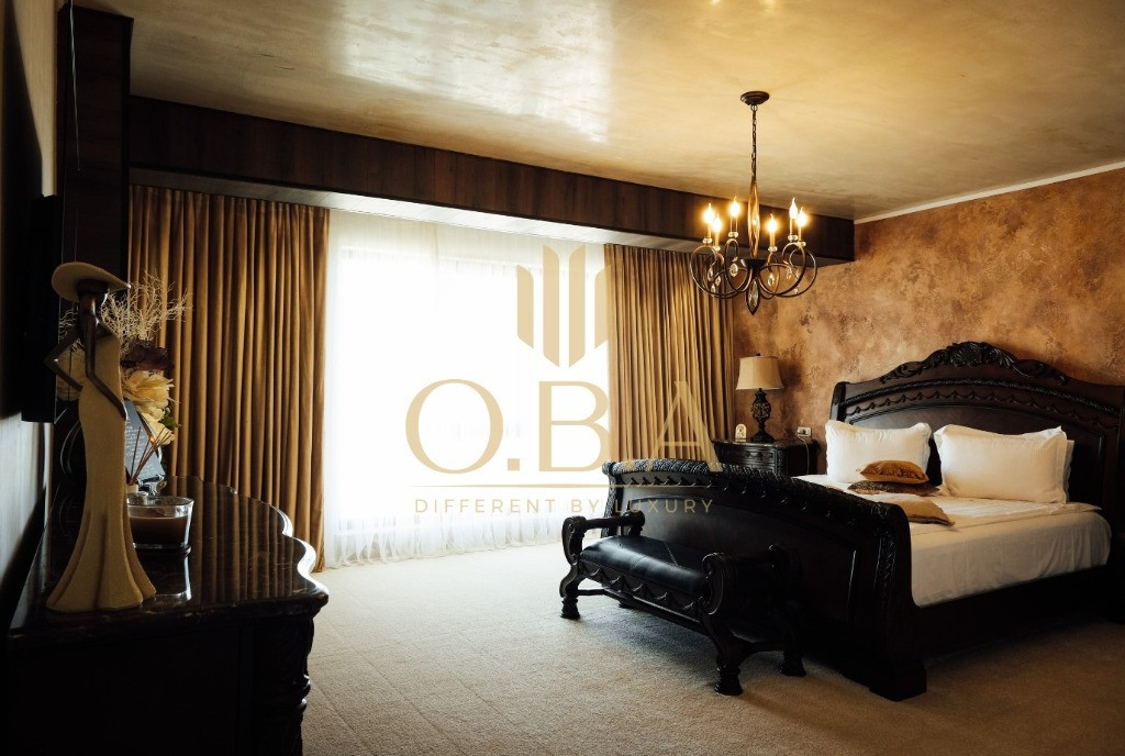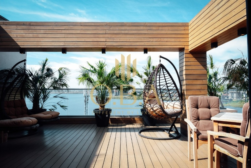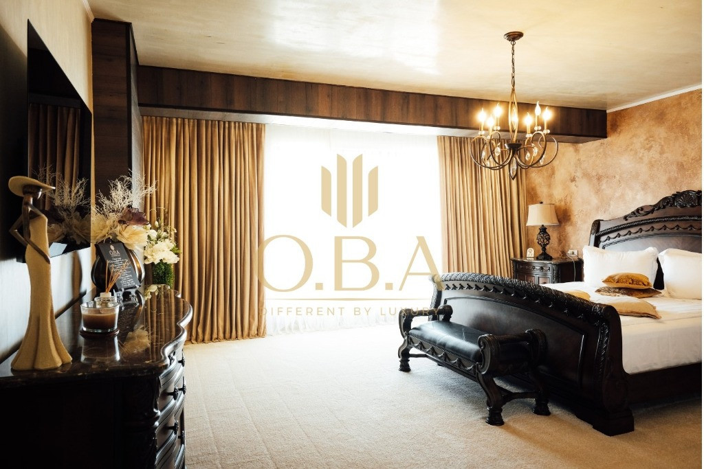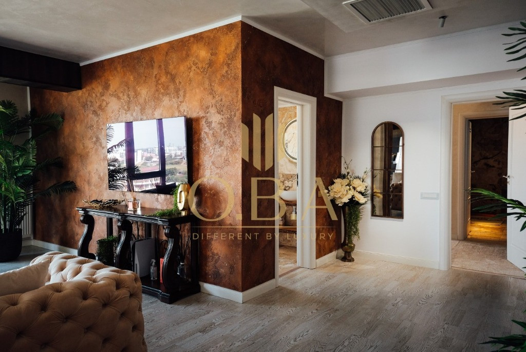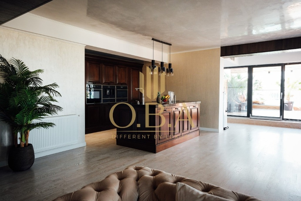 O.B.A different by luxury are plăcerea să vă prezinte un proiect care atrage prin design-ul opulent și suprafețe generoase, un simbol incontestabil al bunului gust și luxului . Un Penthouse cu o suprafață utilă de 175,66 mp compus dintr-un dormitor, două băi și un living impresionant având o bucătărie de tip open space. Apartamentul propus se află într-un ansamblu rezidențial în zona de Nord a stațiunii Mamaia și este compus din două camere de locuit, o bucătărie open space, doua băi și un hol. Suprafață totala utilă este de 175,66 mp. În prezent de penthouse-ul este modificat din 3 camere în 2, dar în funcție de dorințele clientului apartamentul se poate reface la starea inițială pentru a avea 2 dormitoare, 2 băi, living și bucătărie separată. El este situat la etajul 9 în ansamblul residential Miramar și oferă o vedere spectaculoasă asupra Mării Negre cât și a lacului Siutghiol. Apartamentul este complet utilat, mobilat și oferă tot confortul unei locuințe noi, având încălzire în pardoseală, centrală termică pe gaz și instalație casetata de aer condiționat. Băile sunt echipate complet, placate în marmura naturala, având suprafețe generoase. Materialele au fost alese cu mare atenție, conferind acestora o eleganță aparte. Fiecare piesă de mobilier a fost atent aleasă astfel încât să se păstreze linia de design. Decorarea este realizată într-o manieră neutră, având tonuri calde de crem și maro, toate fiind armonizate cu ajutorul unui designer experimentat. Mobila clasică va fi mereu la modă. Accentele clasice îi asigură unicitate. Mobilierul din locație este exclusivist, de cea mai bună calitate, fiind lucrat manual din lemn masiv. Bucătăria este complet utilată cu aparatura built-in, având o insula placată cu blat tip compozit. Terasa este placată integral cu lemn de teck, fiind mobilată și decorată complet. Penthouse-ul dispune de 2 locuri de parcare. Proprietatea este evaluată de către un evaluator bancar la o sumă de minim 875.000 euro.