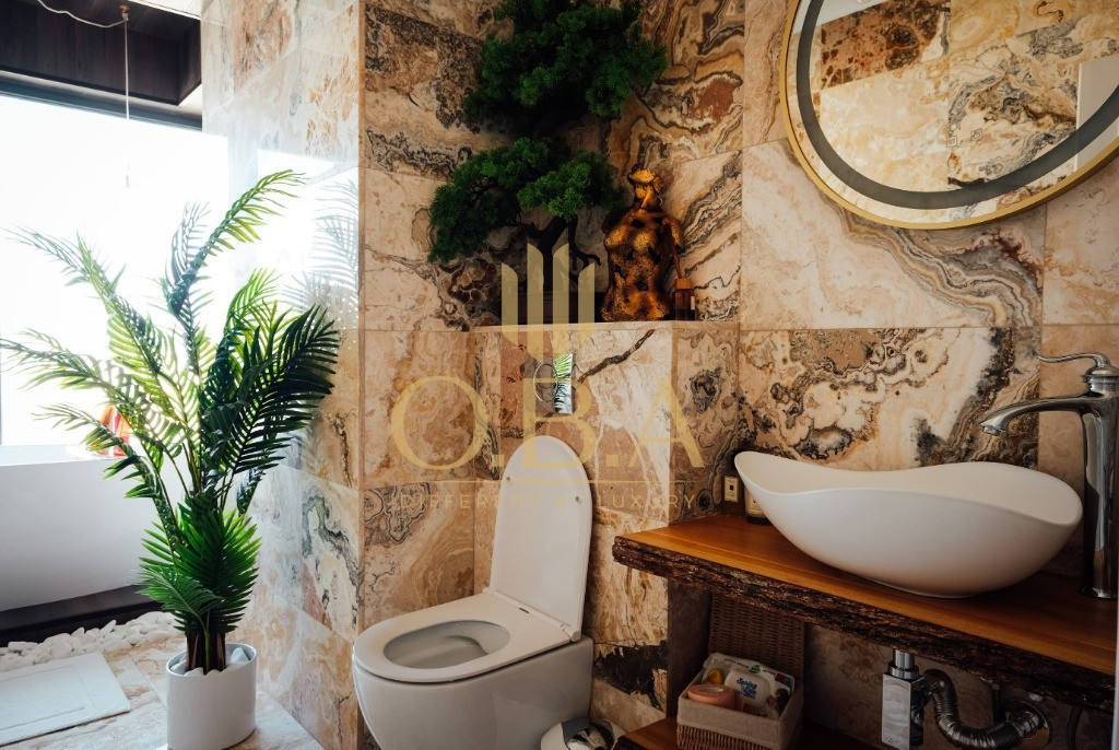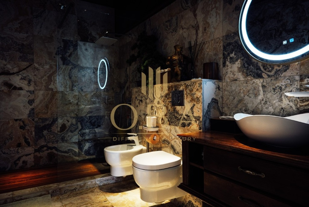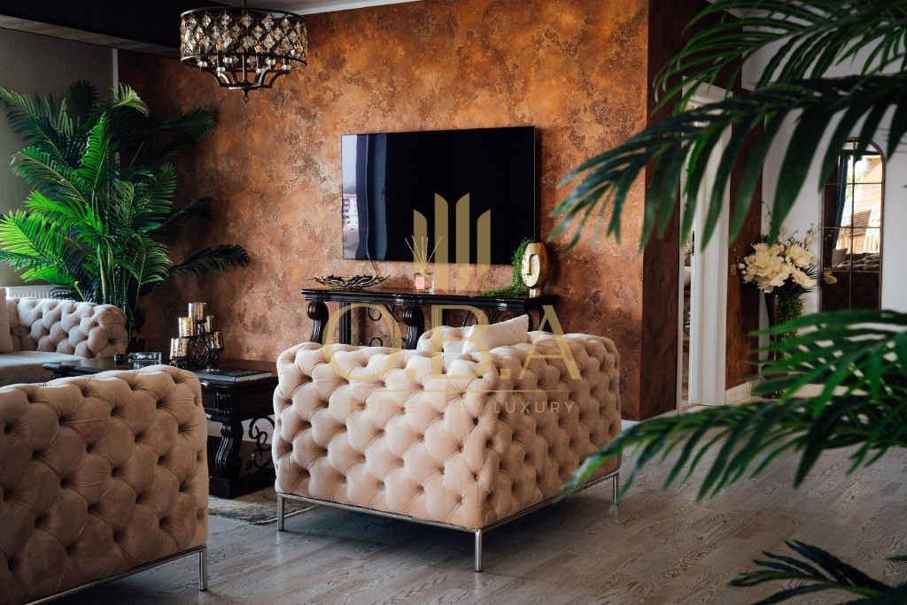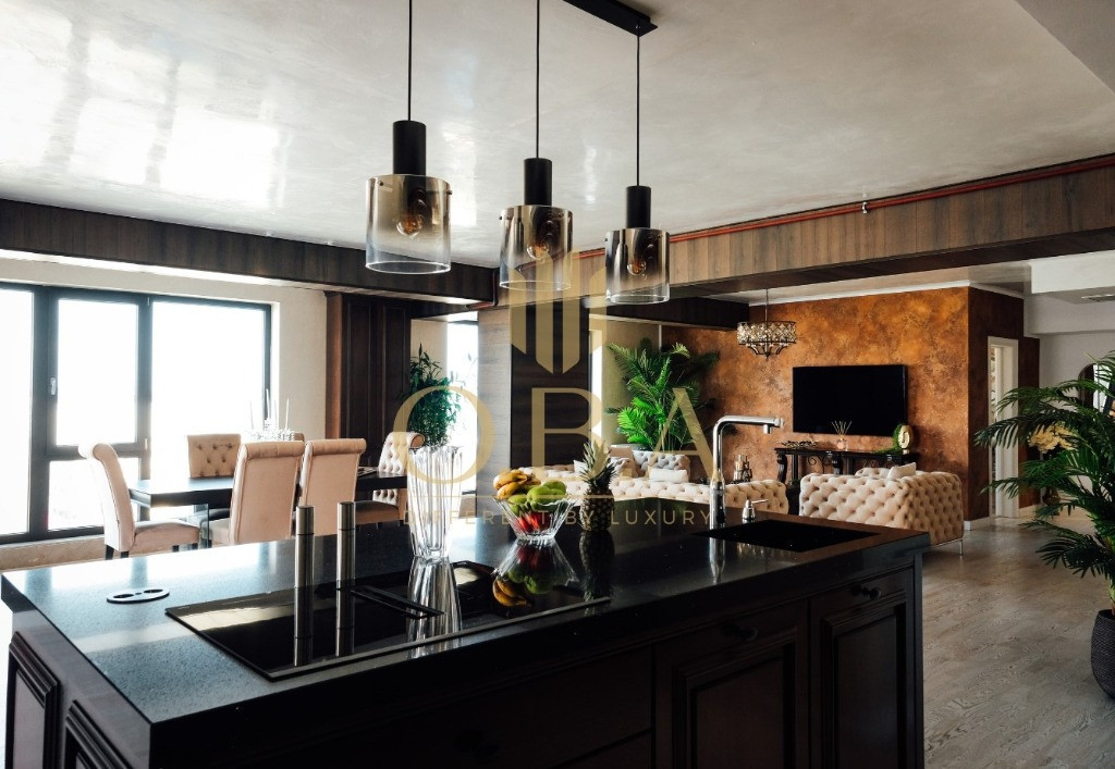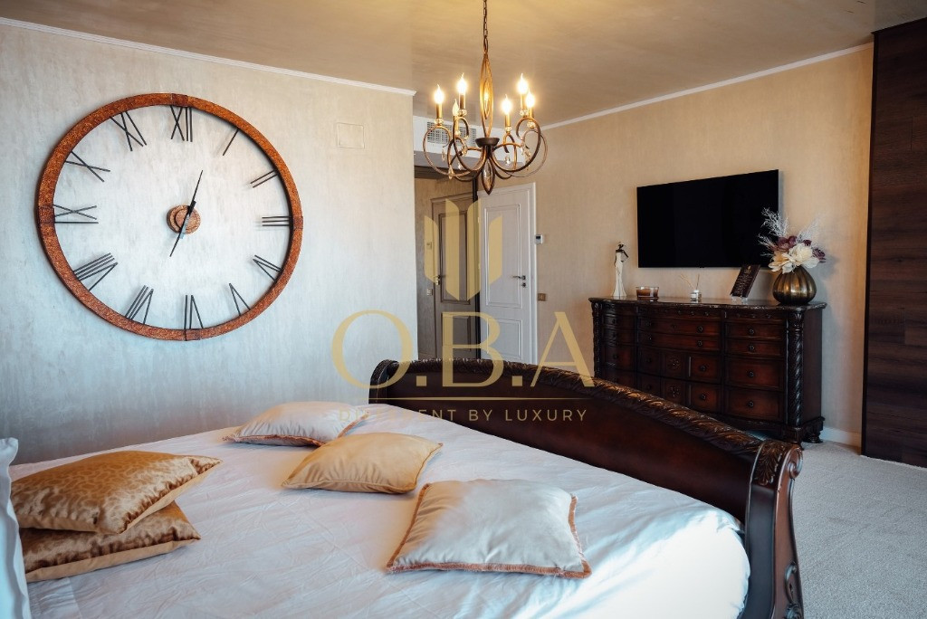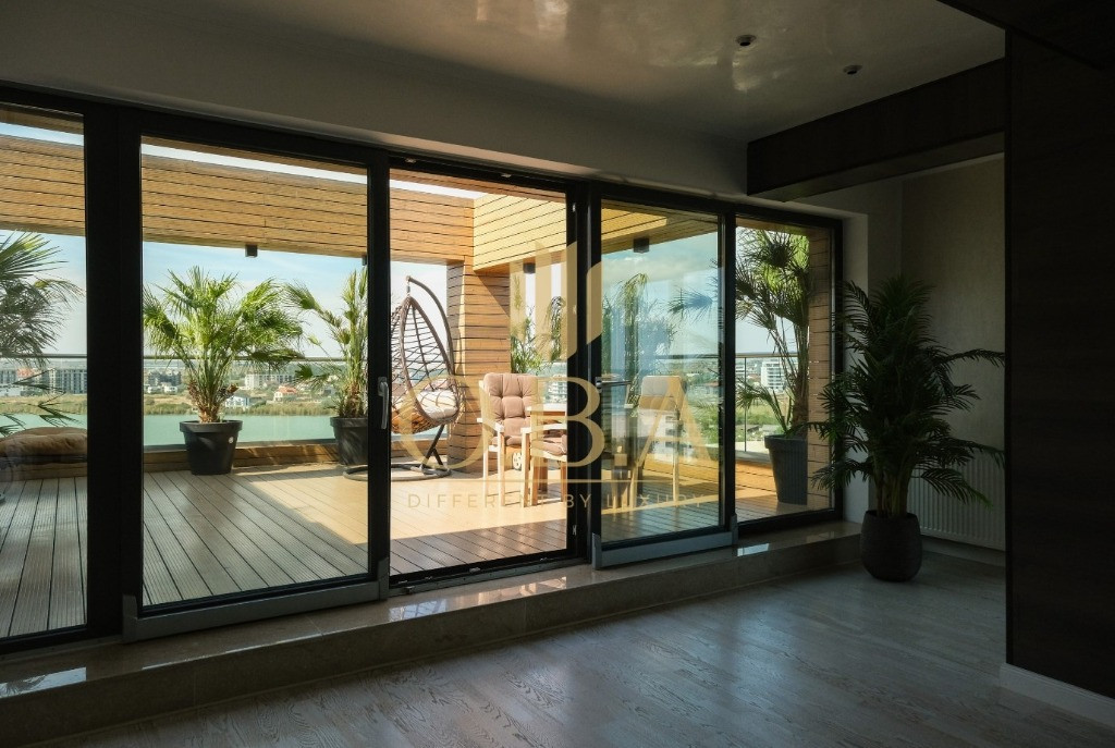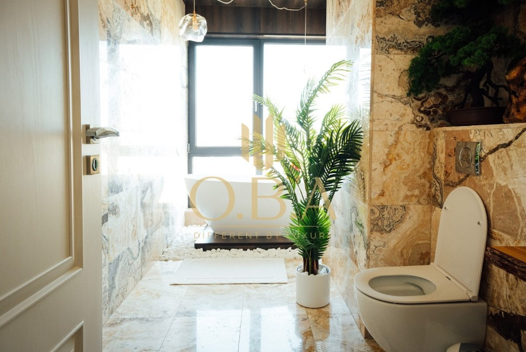 O.B.A different by luxury are plăcerea să vă prezinte un proiect care atrage prin design-ul opulent și suprafețe generoase, un simbol incontestabil al bunului gust și luxului . Un Penthouse cu o suprafață utilă de 175,66 mp compus dintr-un dormitor, două băi și un living impresionant având o bucătărie de tip open space. Apartamentul propus se află într-un ansamblu rezidențial în zona de Nord a stațiunii Mamaia și este compus din două camere de locuit, o bucătărie open space, doua băi și un hol. Suprafață totala utilă este de 175,66 mp. În prezent de penthouse-ul este modificat din 3 camere în 2, dar în funcție de dorințele clientului apartamentul se poate reface la starea inițială pentru a avea 2 dormitoare, 2 băi, living și bucătărie separată. El este situat la etajul 9 în ansamblul residential Miramar și oferă o vedere spectaculoasă asupra Mării Negre cât și a lacului Siutghiol. Apartamentul este complet utilat, mobilat și oferă tot confortul unei locuințe noi, având încălzire în pardoseală, centrală termică pe gaz și instalație casetata de aer condiționat. Băile sunt echipate complet, placate în marmura naturala, având suprafețe generoase. Materialele au fost alese cu mare atenție, conferind acestora o eleganță aparte. Fiecare piesă de mobilier a fost atent aleasă astfel încât să se păstreze linia de design. Decorarea este realizată într-o manieră neutră, având tonuri calde de crem și maro, toate fiind armonizate cu ajutorul unui designer experimentat. Mobila clasică va fi mereu la modă. Accentele clasice îi asigură unicitate. Mobilierul din locație este exclusivist, de cea mai bună calitate, fiind lucrat manual din lemn masiv. Bucătăria este complet utilată cu aparatura built-in, având o insula placată cu blat tip compozit. Terasa este placată integral cu lemn de teck, fiind mobilată și decorată complet. Penthouse-ul dispune de 2 locuri de parcare. Proprietatea este evaluată de către un evaluator bancar la o sumă de minim 875.000 euro.