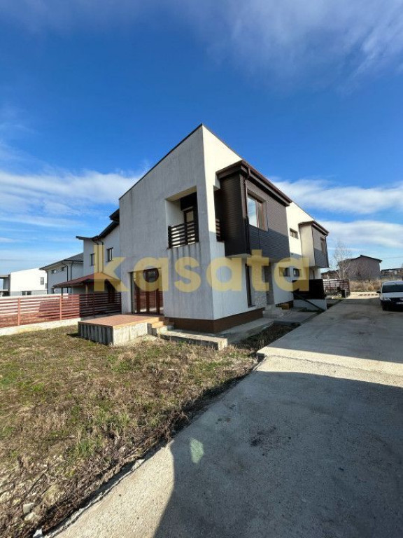 KASATA va propune spre achizitie o casa la un pret exceptional in proximitatea Bucurestiului. Casa tip duplex dispune de o suprafata de 96 mp utili distribuita pe parter + 1 etaj si teren 250 mp. Parter - 45 mp I living 22 mp I bucatarie 12,30 mp I baie 4,50 mp I hol 5,35 mp I spatiu depozitare 1,60 mp ; Etaj - 51 mp I dormitor matrimonial 13 mp + baie 4,20 mp I dormitor 12 mp I birou I 9 mp I baie 4,50 mp I hol 4,80 mp I balcon 3,60 mp ; Casa mai dispune si de 2 terase, una de 7,50 mp respectiv 1,20 mp, pod de depozitare (izolat) cu acces chepeng plus 2 locuri de parcare. Casa se vinde la pretul afisat exact asa cum se vede in poze (fara centrala, calorifere, sanitare si mici finisaje) sau la pretul de 155.000 Euro cu acestea instalate si finisate. Suplimentar constructorul este deschis la alte modificari ale peretilor interiori sau pe parte de finisaje la cerere. Pentru detalii suplimentare si vizionari, sunati-ne chiar acum!