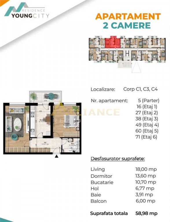 2 camere | 59 m² | Bucuresti-Ilfov / Popesti Leordeni