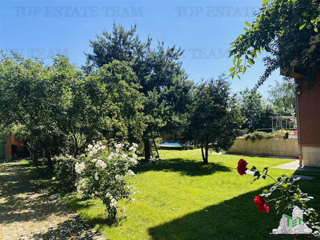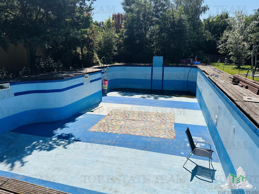 Locuinta se vinde complet mobilata si utilata, exact precum le regasiti in poze. Curtea este extrem de spatioasa, amenajata perfect pentru relaxare, o adevarata oaza de liniste si aer curat, o gradina superba cu aspersoare automate, piscina, gratar, curtea mai contine 1 garaj de 32 mp. PUNCTE FORTE IN ZONA:  locatie deosebita cu vecini de calitate, liniste, se pot face plimbari in padure sau pe marginea lacului, exista gradinita, scoala, supermarket, restaurante in zona.