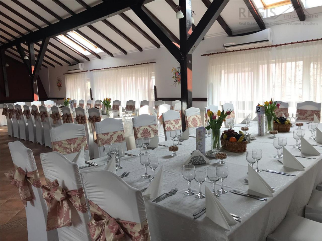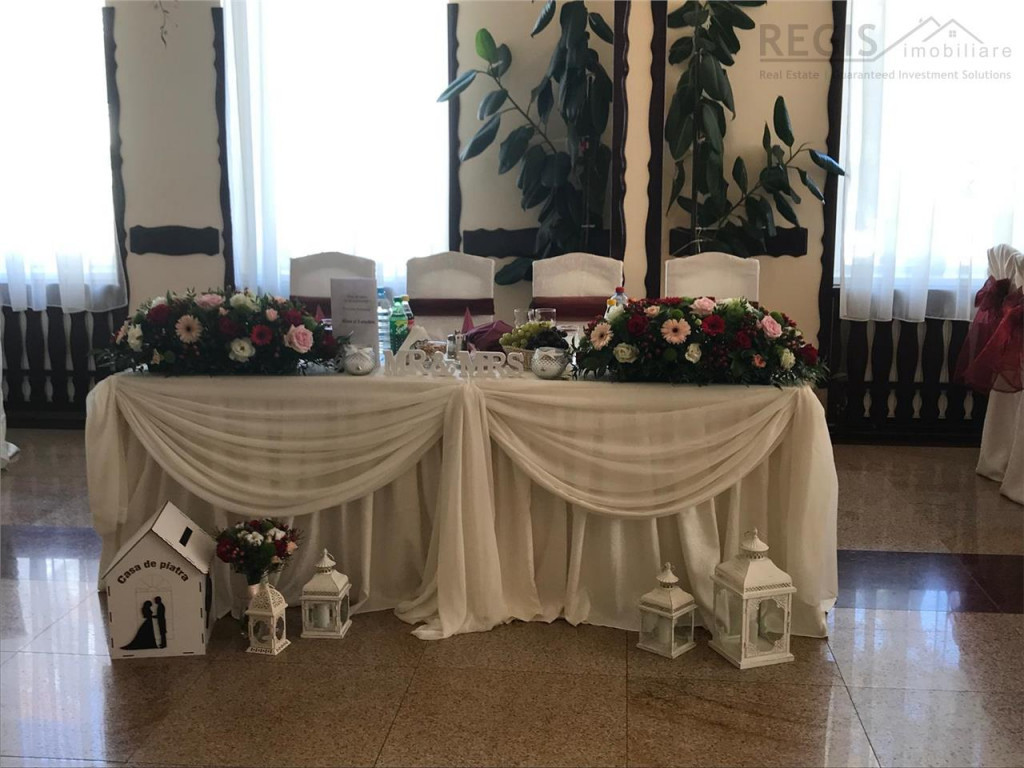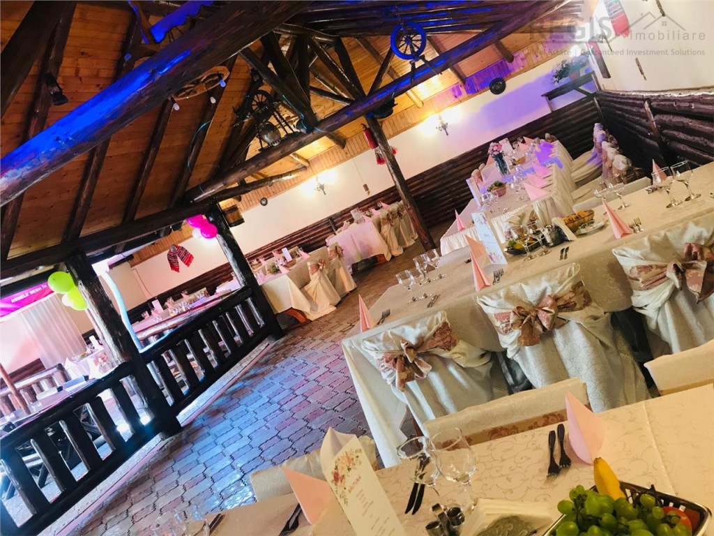 ID intern: 6765 Regis Imobiliare propune spre vanzare Cladire - Restaurant in zona Centrala -Rasnov, reper Primarie. Cladirea cu o suprafata utila de 366 mp,S P M si e construita pe un teren total de 875 mp. Restaurantul a fost renovat de curand si e complet mobilat si utilat. E dispus astfel; *Parter -sala mare 80 locuri, sala mica 40 locuri,bar, bucatarie, zone servicii si zone destinate angajatilor. Centrala Termica, si Climatizatoare. *Mansarda - sala evenimente 150 locuri cu zone de servicii, spatiu pt muzica si camera destinata miresei. Total climatizata. *Curte - zona de joaca, Terasa acoperita si deschisa de 120 locuri, toalete si zona reciclare deseuri inchisa. *Subsol - Camera Frig, depozite Cladirea are Autorizatii de Functionare conforme si PSI. In strada se afla o Parcare mare. Totul pregatit pentru transfer proprietar si puteti deschide usile clientilor Dvs. Nu pierdeti aceasta oportunitate sa deveniti proprietarul a unei cladiri in Centrul Rasnov-lui si a unui Fantastic Restaurant cu Terasa, care nu necesita renovari si autorizatii de functionare in plus e complet utilat si mobilat. Pretul e usor negociabil. Pentru detalii si vizionari asteptam sa ne contactati.