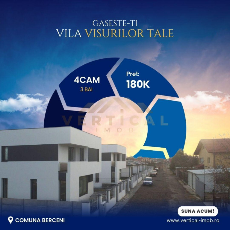 Tocmai am vandut proprietatea din anunt! Langa ea, deja este la stagiul ,,La rosu,, urmatoarea proprietate! La acest moment puteti beneficia de discountul de 10.000Euro pana la final de luna! Iar urmatoarele case vor venii pregatite pentru semineu! (La alegerea clientului) De vanzare aceasta proprietate exceptionala situata in partea de intrare a comunei Berceni in apropriere de zona comerciala din comuna Berceni avand in proximitate Penny, Mega Image, Carrefour, Lidl, transport in comun, etc. Vila are un regim de P 1Etaj, in stil mediteranean contemporan, cu acoperis intr-o apa acoperit cu tabla premium lindab, izolata cu polistiren de 20cm EPS80 si tamplarie Salamander Tripan aceasta vila are o performanta energetica exceptionala! Dotata cu 4 Camere, 3 Dormitoare spatioase, 3 Bai, Balcon, Living enorm cu bucataria deschisa care se poate inchide imediat si o terasa enorma, toate acestea fac aceasta proprietate perfecta pentru tine si familia ta. Situata pe un teren de 300m, perfect amenajat cu Pavele, Gazon si Aspersoare pentru a-l mentine verde si frumos! Pretul este cu TVA inclus. Oferim si consultanta financiara(Broker)! Agentul tau, Leonard