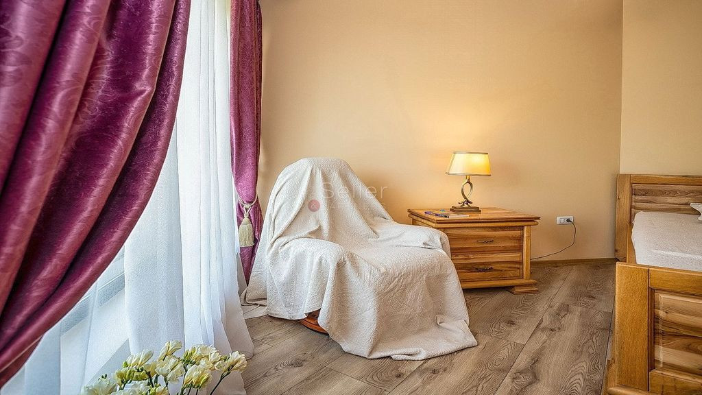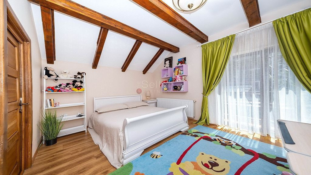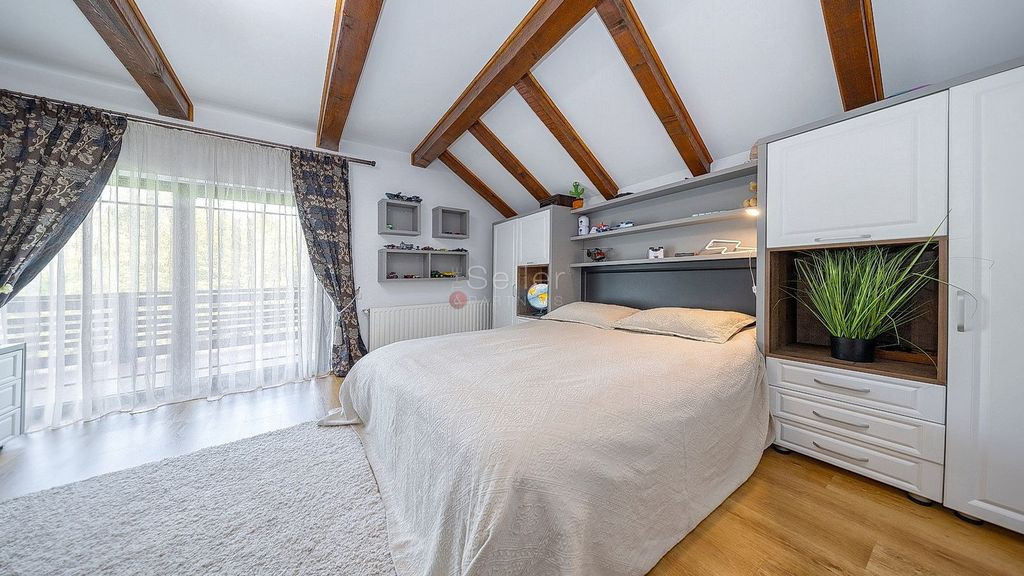 Imobil Deosebit | Bunloc | Sacele - Brasov Ati accesat un imobil situat in cartierul Bunloc - Sacele. DATE TEHNICE: Proprietatea propusa este una deosebita atat datorita arhitecturii, cat si a zonei de amplasare. Aceasta este dispusa pe regim de inaltime P+E, pe o suprafata de 1.395 mp de teren, cu amprenta constructiei de 135 mp. Pe langa suprafata generoasa de teren si proximitatea fata de padure, aceasta se invecineaza cu raul Timis, aici existand o zona de relaxare, ideala pentru recreere si petrecerea timpului liber, in natura. Imobilul este compartimentat dupa cum urmeaza: PARTER: Acest nivel este alocat zonei de zi, dispus astfel: - windfang care, impreuna cu holul de acces, ofera deschidere spre zona de living, bucatarie-dining, baie, debara si acces la scarile interioare; - living-ul, care detine iesire spre terasa, aceasta dispunand de vedere spre raul Timis, aflat in imediata apropiere a proprietatii; - zona aferenta semineului pe lemne reprezinta polul de atractie, al acestui imobil, fiind locul ideal pentru petrecerea timpului de calitate, alaturi de cei dragi; - pe parter regasim si bucataria, care este tip open space, cu zona de dining, aceasta fiind complet mobilata si utilata. Mobilierul din lemn - esenta de nuc, se imbina perfect cu cromatica casei. - tot pe acest nivel regasim un grup sanitar, ce dispune de aerisire naturala; - spatiu depozitare; ETAJUL MANSARDAT: Alocat zonei de noapte, acesta este impartit dupa cum urmeaza: - dormitorul matrimonial, cu o suprafata de 25 mp, ce dispune de acces la terasa de 7,4mp, detinand baie si dresing proprii; Mobilierul din lemn masiv, esenta de nuc&stejar, ofera o eleganta aparte acestei camere. - dormitorul 2, in suprafata de 19 mp, ofera deschidere spre terasa de 15 mp; - dormitorul 3, in suprafata de 17 mp, detine acces spre propria terasa, in suprafata de 14 mp; - cea de-a doua baie, care deserveste celelalte doua dormitoare, este dotata cu cabina de dus si aerisire naturala; Proprietatea detine pod amenajat. FINISAJE: - pereti caramida si izolatie termica; - acoperis cu tigla, izolat; - tamplarie PVC, tripan; - incalzire calorifere si termosemineu; - parchet lemn si usi lemn; - centrala termica gaz; - peisagistica realizata, cu gazon si plante ornamentale; - zona privata de plaja. UTILITATI: gaz, curent, apa, canalizare. AVANTAJE: - zona pitoreasca, langa padure; - apropierea de trasee montane, parapanta, enduro, plimbari cu bicicleta, ATV; - pretabil atat pentru locuit, cat si ca locatie de vacanta; - apropierea de cea mai importanta zona de retail, a orasului (Selgros, Dedeman, Metro etc). IMPREJURIMI: Imobilul este situat intr-o zona de vile, cu regim de inaltime P+M, fiind perfect racordat la infrastructura zonei: - la 20 minute de Piata Sfatului, cu auto; - la 500 de m de statia de autobuz; - magazinele sunt situate la 5 minute distanta, cu auto; Pentru informatii suplimentare, broker-ul care administreaza aceasta oferta, va sta la dispozitie. COMISION 0% - Cumparator Structura acestei prezentari nu poate fi preluata, fara acordul scris al The Seller & Partners.