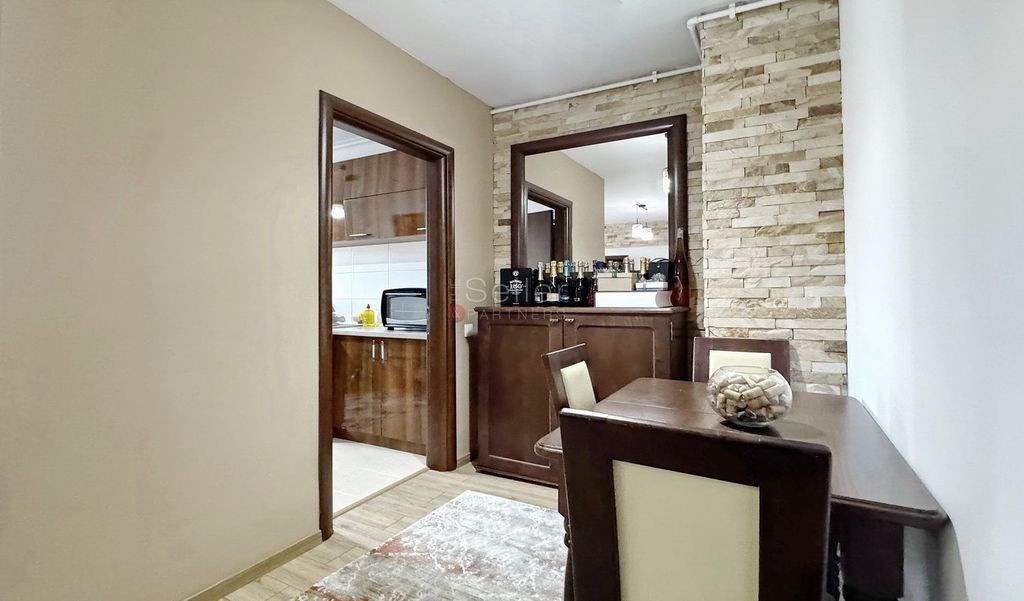 Acest imobil este situat in zona Astra, in imediata apropiere a Centrului Comercial Carrefour, supermarket-urile Lidl si Kaufland. COMPARTIMENTARE: - Holul de acces; - Zona de zi, care detine o suprafata vitrata mare si deschidere la terasa; - Bucataria, de tip inchisa, fiind mobilata si dotata cu plita, cuptor, hota, frigider, masina de spalat vase, etc.; - Zona deschisa pentru luat masa; - Dormitorul matrimonial; - Dormitorul secundar; - Baile, una fiind dotata cu cada si cealalta cu dus si aerisire ventilata; DOTARI: - centrala termica; - tamplarie PVC, cu geam termopan; - usa metalica; - terasa de 7 mp, cu acces din fiecare incapere. Inchirierea proprietatii se va face cu mobilierul aferent prezentei ofertari. Imobilul este situat intr-o zona de blocuri, accesul auto, pana in zona de centru a orasului facandu-se in cca. 6 minute. ATRACTII ZONA: Magazine, restaurante, parcuri, școli, spitale. ACCESIBILITATE: Transport public în apropiere. NOTA: Perioada Minima Inchiriere Acceptata: 12 luni; Locatorul nu accepta animale de companie. Informatiile prezentate reflecta situatia reala a proprietatii, fara a constitui o oferta contractuala. Aceste date au fost obtinute verbal, de la titularul de drept al imobilului. Structura acestei prezentari nu poate fi reprodusa, fara acordul scris al The Seller and Partners.