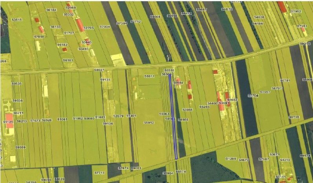 Terenul prezinta un front public de cca. 5,2 metri la drumul de acces cu numar cadastral 59204, strada publica neasfaltata.
