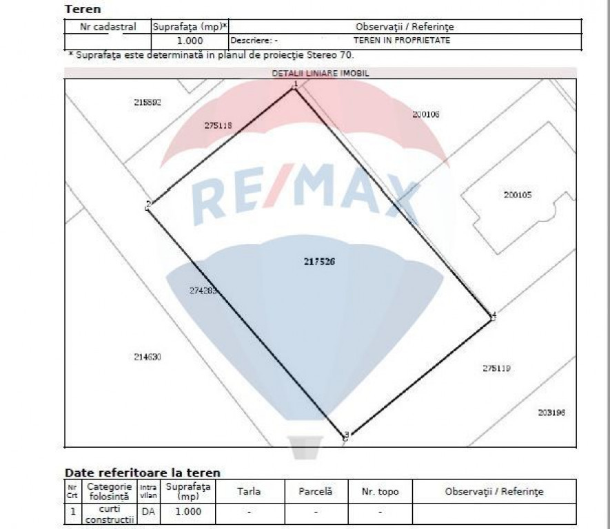 Suprafață teren 1000 m²