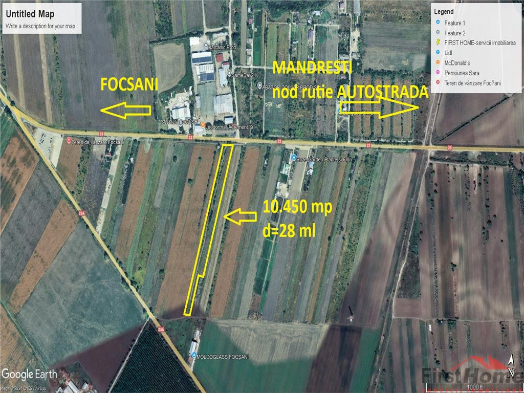 Teren Intravilan Construibil de vanzare in Focsani - Exterior Vest, reper nod autostrada, iesire Focsani spre Mandresti ! - suprafata de 10450 mp - deschiderea de 28 ml la strada principala DN -oportunitate investitie -pretabil pentru sectorul industrial / comercial !! ID 2721