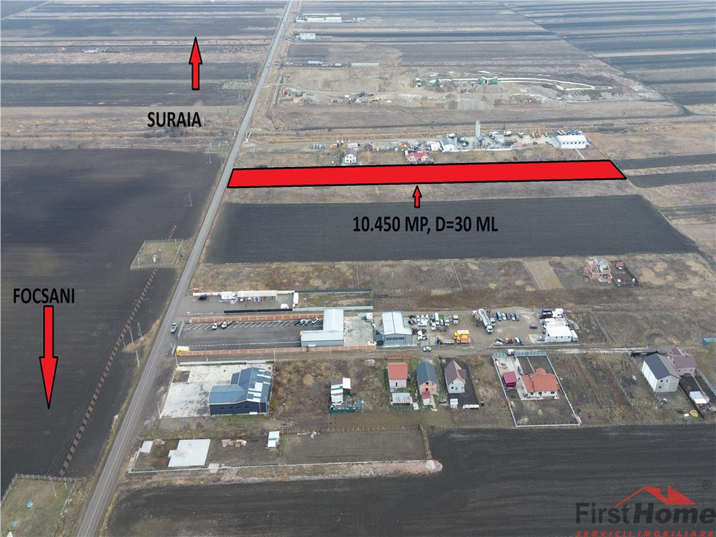 Teren Intravilan Construibil de vanzare in Focsani - Est, reper Soseaua Suraii, avand o suprafata de 10450 mp si deschiderea de 30 ml la 1 strada. Pretul este negociabil . ID intern: 2352