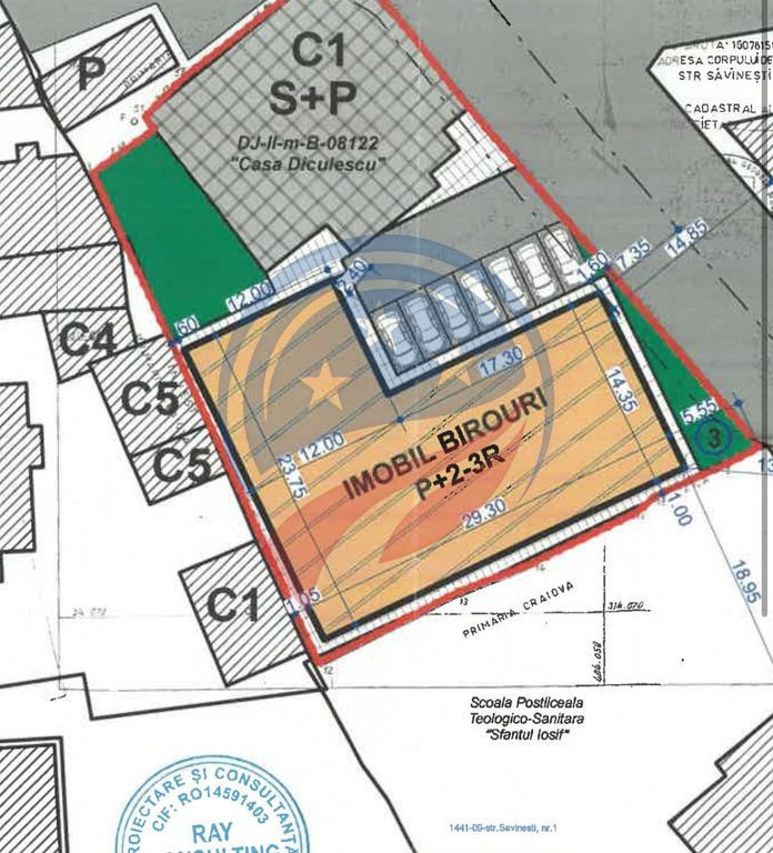 Prime Imobiliare Craiova va ofera: De vânzare – Teren și clădiri de birouri, Craiova – ultracentral, str. Savinești • Suprafață teren: 1.302 mp • Deschidere: 48 m la strada Savinești • Clădiri existente: • Clădire de birouri cu subsol și parter • Suprafață utilă totală: aproximativ 800 mp • Una dintre clădiri este clasată ca monument istoric, cu valoare arhitecturală și patrimonială • Restul construcțiilor pot fi demolate conform reglementărilor urbanistice, existând autorizatie in acest sens. • Proiect disponibil: pentru dezvoltare P+2–3R, cu funcțiuni de birouri, servicii sau mix rezidențial-comercial • Regim juridic: proprietar persoană juridică (firmă) Amplasare: • Strada Savinești, zonă ultracentrală a municipiului Craiova • Acces facil către instituții publice, unități bancare, zone comerciale, centre educaționale și culturale • Trafic pietonal și rutier intens, ceea ce conferă vizibilitate și accesibilitate sporită Potencial zonă: • Dezvoltare imobiliară cu multiple destinații: clădiri de birouri, spații comerciale, servicii medicale sau educaționale, unități de reprezentanță • Posibilitatea integrării clădirii monument în circuit cultural, turistic sau de reprezentanță de prestigiu • Valoare ridicată a terenului prin poziția centrală, deschiderea generoasă de 48 m și prin posibilitatea de dezvoltare conform proiectului urbanistic aprobat Mențiuni suplimentare: • Oportunitate de investiție într-o zonă cu potențial ridicat de creștere și atractivitate imobiliară • Terenul și clădirile existente permit soluții arhitecturale moderne, cu păstrarea și valorizarea patrimoniului istoric Pentru mai multe detalii o puteti contacta pe Maria Tutunariu la 0775 122 641