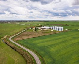 - în suprafață de 14.700 mp, sunt trei construcții aflate la 3km de la șoseaua principală, utile pentru parcarea utilajelor, depozitării de combustibili, îngrășăminte, erbicide, etc.
