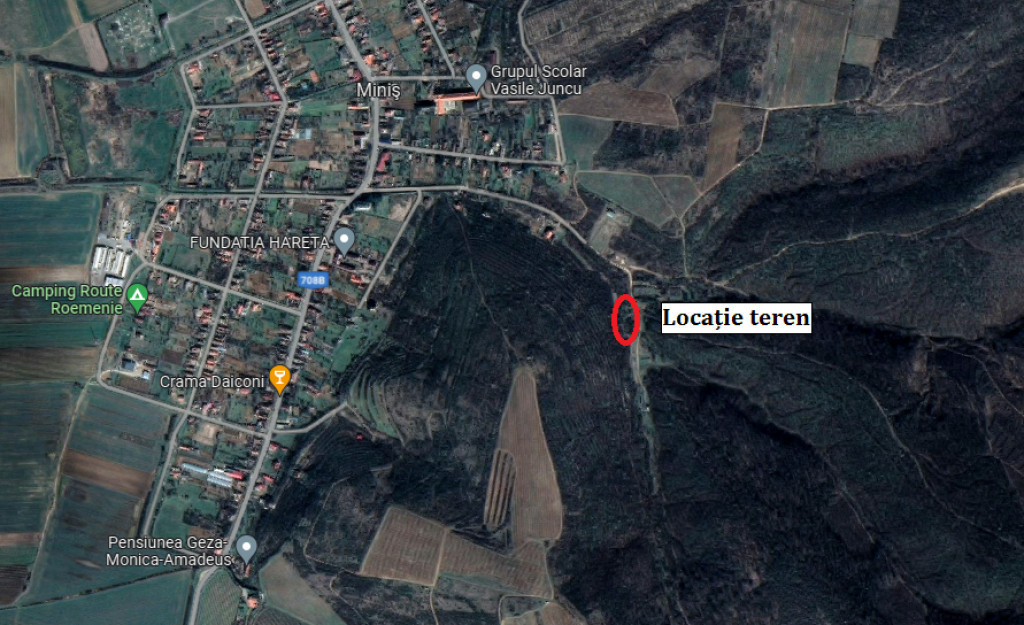 Vand teren in Minis, intravilan, categoria vie, in suprafata de 1400 mp, utilitati in zona.