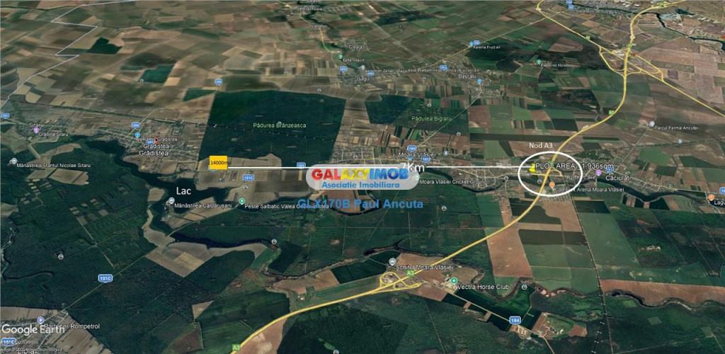 Teren 14000 mp la Dj Moara Vlasiei Gradistea latura Padure