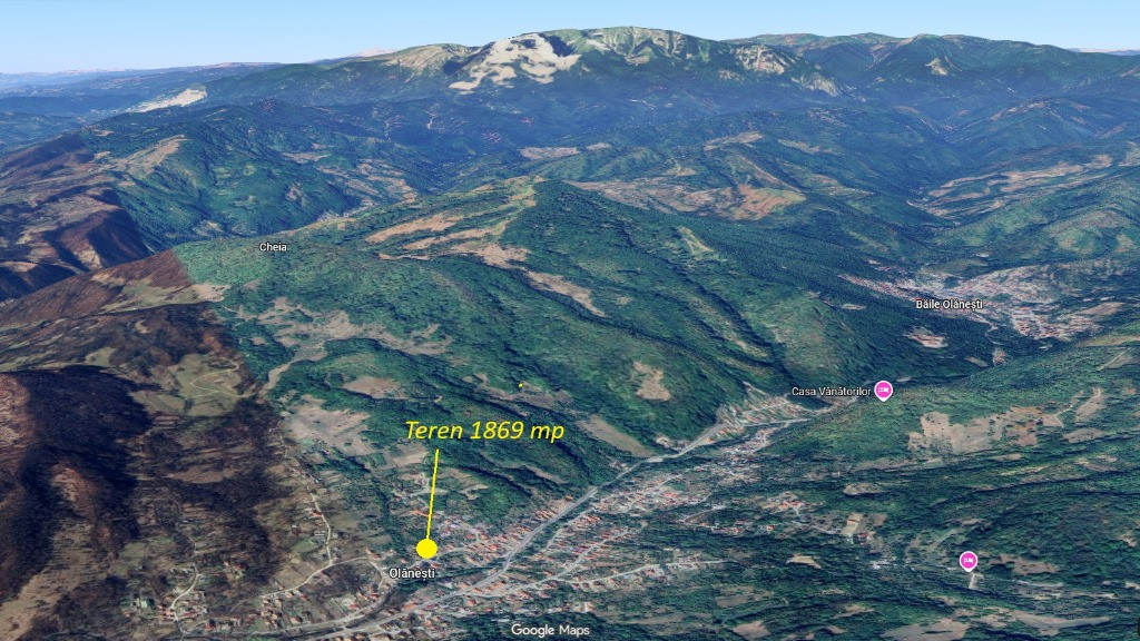 TEREN 1869 MP, CADRU NATURAL SUPERB, TOATE UTILITATILE Baile Olanesti, str. Paraiasului, nr.14, jud. Valcea 35.000 Euro; 19 euro/mp FARA COMISION LA CUMPARATORI ! Terenul este amplasat la 3 km de centrul statiunii Baile Olanesti, un cadru natural minunat definit de paduri de foioase ce inconjoara zona locuita si se intind pana la Parcul National Buila Vanturarita. Accesul este bun, asfaltat integral, o strada secundara, deviatie din Drumul National ce tranziteaza zona. Vecinatatile constau intr-un mix de case vechi si case noi la care se adauga cabanute de interes turistic, fara factori de zgomot sau poluare. Ca utilitati avem energie electrica, internet, gaze naturale, retele publice de apa si canalizare, tot ce este necesar pentru un trai modern, fara batai de cap. Terenul are o suprafata de 1869 mp, intravilan total, urca de la strada in prima parte iar sus are un vast platou unde putem amplasa constructii si alte facilitati de agrement. Privelistea este superba asupra Vaii Olanestiului si a padurilor din jur. Regim urbanistic este permisiv, zona de locuinte si functiuni adiacente, cu procent de ocupare a terenului: 35% si regim de inaltime maxim: P+2. Un lot ideal pentru casa sau facilitate turistica, amplasat intr-o zona de vis ! Marius Statescu 0741.291.810 Aceasta oferta imobiliara este gestionata exclusiv de Imo Office Marius Statescu si este deschisa spre colaborare catre toate agentiile imobiliare !