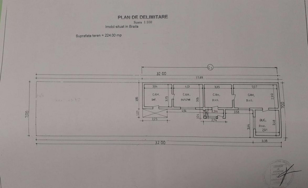 Teren 224 mp deschidere 7 m, Radu Negru- Buzaului -spital Judetean Teren intravilan de constructie in suprafata de 224 mp * zona Radu Negru - Buzaului * Cu casa demolabila pe teren * Deschidere 7 m * Utilitati: apa, curent electric, canalizare *Gaze Cristian Imobiliare - din 1993 Primii in Braila CRS8196 amp;01