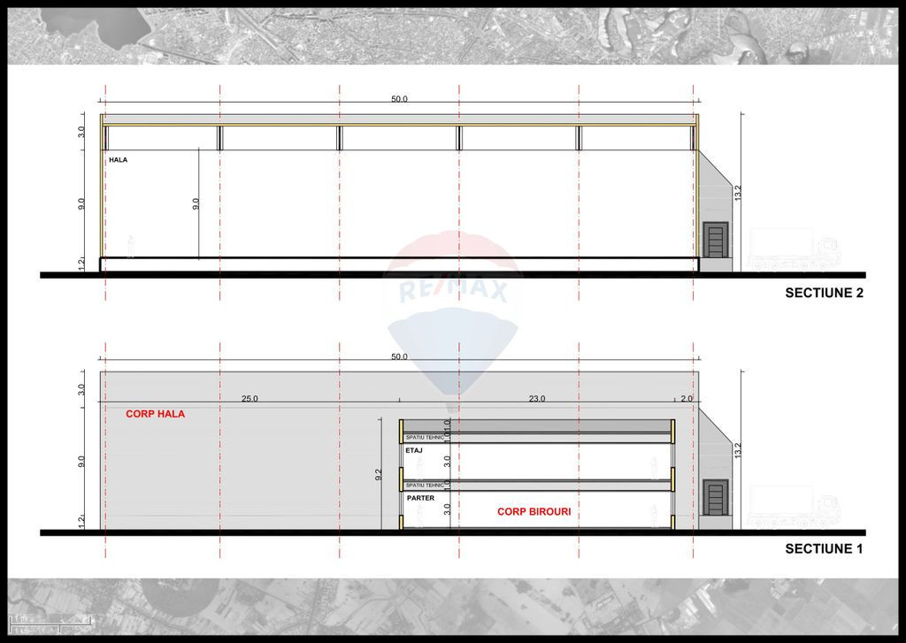 Teren 20060 mp, cu deschidere la drum paralel cu autostrada Soarelui (Allea Soarelui) pretabil pentru constructia a 2 hale avand amprenta la sol 6145mp, respectiv 1575 mp si a unui corp de birouri cu amprenta la sol de 400 mp. Proiectul dispune de 20 locuri de parcare pentru Tiruri, 20 de locuri de parcare pentru camioane si 20 pentru autoturisme. Acces strada Apusului, Autostrada Soarelui (A2), deschidere 130 ml, la bretea si drum de exploatare pe fiecare latura. Terenul nu are pamant de umplutura sau alte resturi de constructii pe el. Conform certificat de urbanism (CU) terenul se afla in zona de functiune mixta- unitati predominat industriale si unitati de comert, servicii depozitare, birouri, mica productie - subzona A. Pentru toate zonele industriale se vor intocmi PUZ-uri - conform PUZ indicii orientativi sunt: H max = 25 m, P+2, POT = 60%, CUT = max 2 Terenul are urmatoarele restrictii: 15m de la marginea putului de sonda (conform operatorului putului) si 7 m de la calea ferata Terenul tine administrativ de GLINA https://zoom.earth/#view=44.415745,26.197761,14z/layers=labels,crosshairs