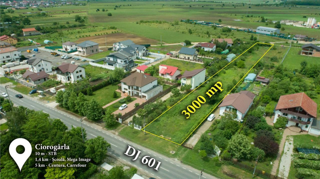 Excelenta prin experienta! Va propunem la vanzare in exclusivitate un teren de 3000mp ideal (parcelabil in 2 loturi de 1500 metri) pentru constructia de case la intrarea in localitatea Ciorogarla, la 10 minute de intrarea in Bucuresti, la 5 kilometri de Soseaua de Centura. Terenul are o pozitie excelenta, la drumul principal dinspre Bucuresti, iar transportul in comun spre capitala este chiar in dreptul terenului, lucru util pentru familiile care vor locui in viitor in casele construite. Terenul are deschidere la dubla (16.57metri la Calea Bucuresti si 19.69 metri in spate la doua strazi). Toate utilitatile (apa, gaze, curent, canalizare) in dreptul terenului. Terenul se vinde pentru pretul de 150000 EURO, nu se adauga TVA. Oferim consultanta gratuita pentru obtinerea de credit ipotecar. Oferta apartine agentiei Top Estate Team (www.tet.ro)