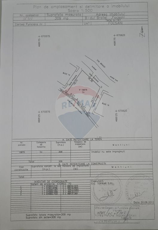 Comision 0% la cumparator! Va propun spre vanzare un teren intravilan situat in Focsani pe Bulevardul Brailei. Terenul are o suprafata de 309 mp cu deschidere de 16 ml. Pentru detalii suplimentare si vizionari va stau cu drag la dispozitie!