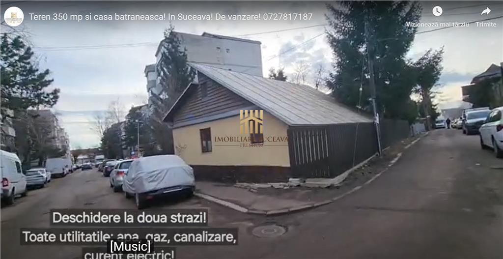Teren 350 mp si casa batraneasca! Suceava! In Suceava! In cartier Zamca! Deschidere la doua strazi! Toate utilitatile: apa curenta, gaz, canalizare, curent electric! Pret fix: 150000 euro; Comision 0 pentru cumparator! Sprijin si consiliere din partea agentiei imobiliare pentru realizarea actelor notariale! Detalii: 0727817187 Detalii: 0727817187 ID intern: APH733.