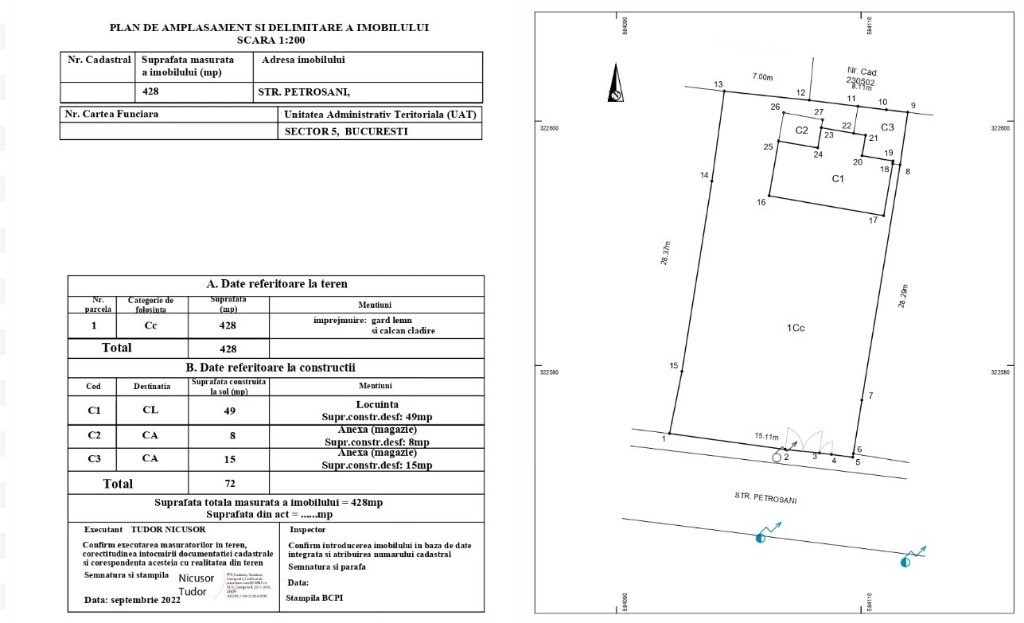 Vand teren intravilan in suprafata de 428mp, cu o deschidere de 15 m si adancime de 28 m. Terenul se afla in zona RAHOVA-TEIUȘ. Este situat la drum asfaltat cu iluminat stradal si dispune de toate utilitatile : Gaze, Curent Electric, Apă, Canalizare. Pe suprafata terenului se afla si o casa din Paianta (constructie demolabila). In imediata apropiere intalnim: LIDL,CORA, KAUFLAND, mijloace de transport. Pentru detalii suplimentare privind achizitia si posibilitatile de dezvoltare, nu ezitati sa ma contactati! Informatiile tehnice sunt cele din extrasul de carte funciară! NU doresc sa colaborez cu AGENTII IMOBILIARE! PRETUL USOR NEGOCIABIL
