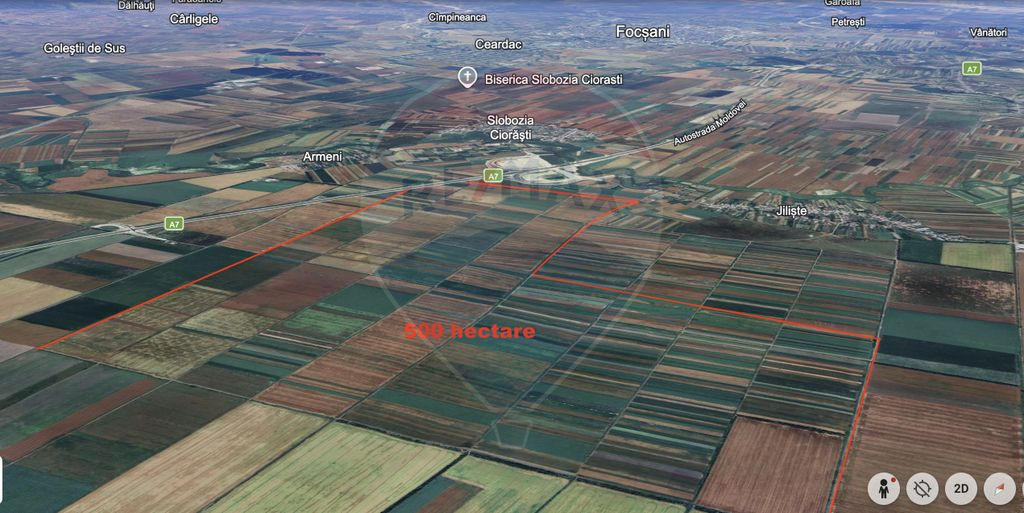 Va propun spre vanzare Ferma agricola de 1500 h unica pe piata imobiliara din Romania. - Teren in proprietate în suprafață de 500 ha plus 1000 h in arenda cu posibiliate de cumparare inca 500 h din cele 1000 h, suprafețele se află în apropierea nodului autostrăzii A7 si se intind pe 3 localități : Slobozia Ciorasti(80%), Gologanu si Maicanesti (Irigabil). - Ferma dispune si de 20h teren intravilan in Slobozia Ciorasti cu post traf si utilitati. Exploatația agricolă este compusă din 1500 h din care 120 h sunt irigate, aceasta ocupand o pozitie de top in cea mai buna zona agricola din Romania.