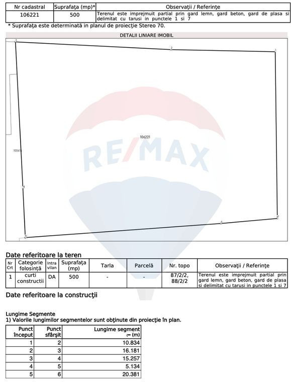 Teren intravilan de 500 mp, situat în Hălchiu, pe strada Parcului. Deschidere generoasă de 27 ml, ceea ce oferă flexibilitate în proiectarea unei case și acces facil pe proprietate. Regim urbanistic: POT 30%, CUT 1,0 regim de înălțime P+E+M – potrivit pentru locuință individuală. Toate utilitățile sunt disponibile la limita proprietății: apă, curent, gaz și canalizare. Poziționat într-o zonă liniștită, la aproximativ 3 minute de mers pe jos față de centrul localității. Pentru informații suplimentare, sunt disponibil telefonic.