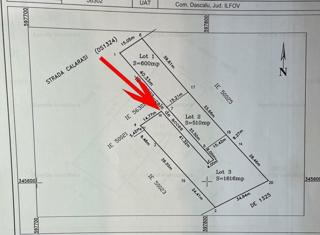 Agentia imobiliara POVIL va propune spre vanzare un teren situat in Comuna Dascalu ( Strada Calarasi). Suprafata utila: 510 mp Cota 1/3 din drum de acces 324 mp. Latime drum de acces: 4 m. Utilitati la drum. Pe langa acest teren mai este inca un lot de 1616 mp. Id intern: XARR0301P