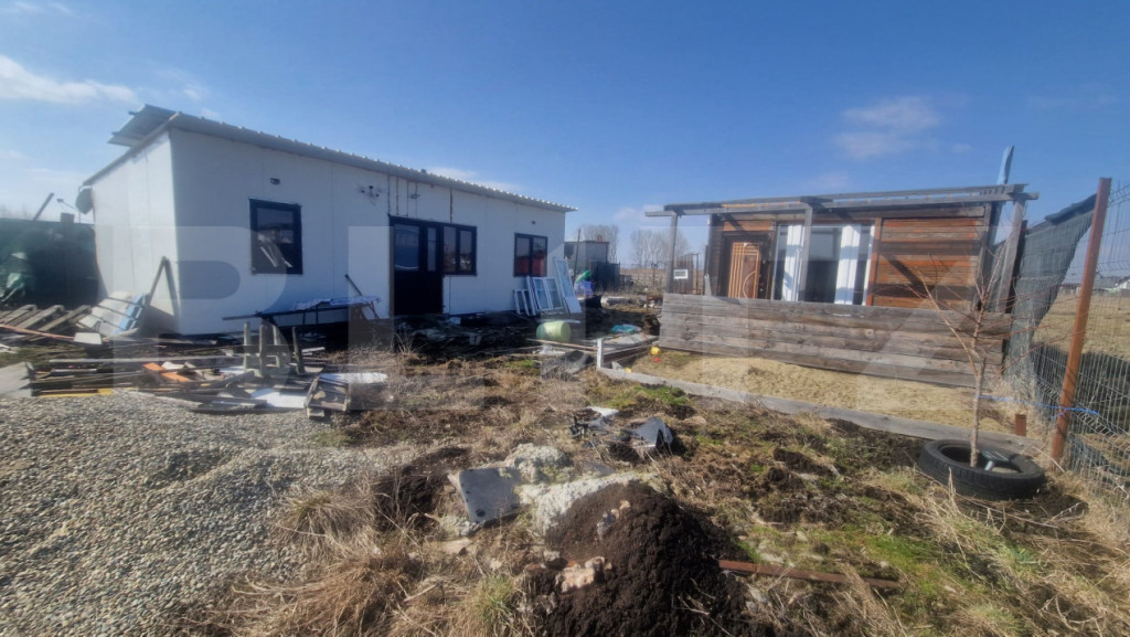Se oferă spre vânzare un teren intravilan de 520 mp plus o ctie modernă construită din panouri sandwich, situată în localitatea Sânpetru, la mică distanță de strada principală, într-o zonă liniștită și în plină dezvoltare. Locuința este realizată pe structură ușoară, fiind necompartimentată la interior, ceea ce oferă noului proprietar libertatea de a-și organiza spațiul exact după propriile nevoi și preferințe. Casa este dotată cu geamuri termopan, sistem de supraveghere video, alarmă și beneficiază de un sistem de panouri solare cu putere instalată de 5,2 kW, asigurând un consum redus și costuri minime de întreținere. Proprietatea este împrejmuită, oferind intimitate și siguranță. În prezent, construcția nu necesită autorizație, fiind ideală ca locuință de vacanță, însă poate fi utilizată fără probleme și pentru locuit permanent. Pe teren există posibilitatea edificării unei case pe fundație sau continuarea compartimentării actualei construcții, în funcție de planurile viitorului proprietar. În vecinătate se află proprietăți similare, locuite permanent, dotate cu puț forat, cablu TV și panouri solare. La limita terenului se află stâlp de electricitate, oferind posibilitatea racordării la rețeaua publică pentru cei care doresc acest lucru. Vă așteptăm la vizionare pentru a descoperi potențialul acestei proprietăți! Cod ofertă / ID BLITZ: P165951 Id intern: P165951