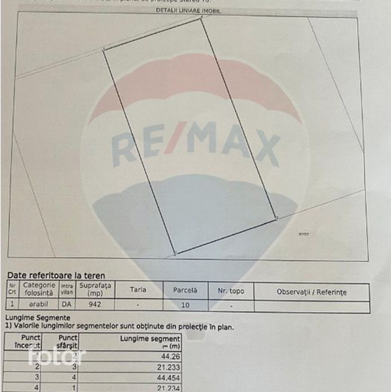 Sunt Florin Lepșa , consultant imobiliar în cadrul biroului RE/MAX Central din Brașov și astăzi vă prezint un teren intravilan de 942 mp, disponibil pentru achiziție. Parcela este amplasată pe teren drept cu front la drum asfaltat, DJ108, care leagă localitatea Sânpetru de localitatea Hărman. Terenul beneficiază de o deschidere de 21,22 metri la drumul principal, oferind acces facil. Utilitățile sunt în fata terenului, curentul electric, apa, canalizarea, gazul in aproprierea terenului. Amplasat într-o zonă mixtă, acest teren oferă o combinație atractivă de accesibilitate și potențial de dezvoltare. Proximitatea de Brașov și peisajul natural adaugă valoare acestei proprietăți, Pentru completarea informațiilor va stau la dispoziție.