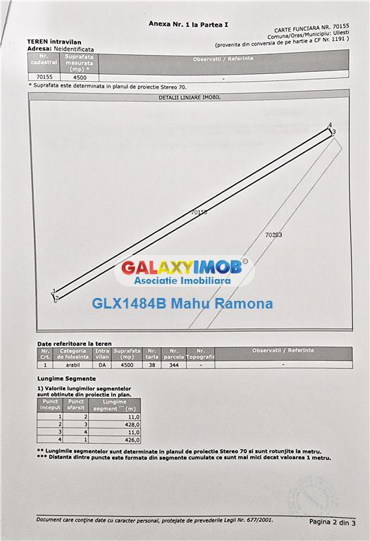 Oferta Exclusiva. *** Va oferim spre vanzare un teren agricol intravilan, cu suprafata de 4500 mp, situat pe raza comunei Uliesti, sat Dogari, la aproximativ 3 km de iesirea de pe autostrada A1 spre Olteni. Terenul este plan, fara constructii, cu acces din drum asfaltat la un capat si la drum de exploatare la celalalt capat. In apropiere sunt locuinte, iar stalpul de curent este la o distanta de 200 m de teren. Forma este dreptunghiulara, cu o deschidere la sosea de 11 m. Terenul se afla la 20 min de Gaesti, 30 min de Titu si la o ora de mers cu masina din centrul Bucurestiului. Pentru mai multe informatii, va rog, nu ezitati sa ne contactati. *** Informatii eficienta energetica: