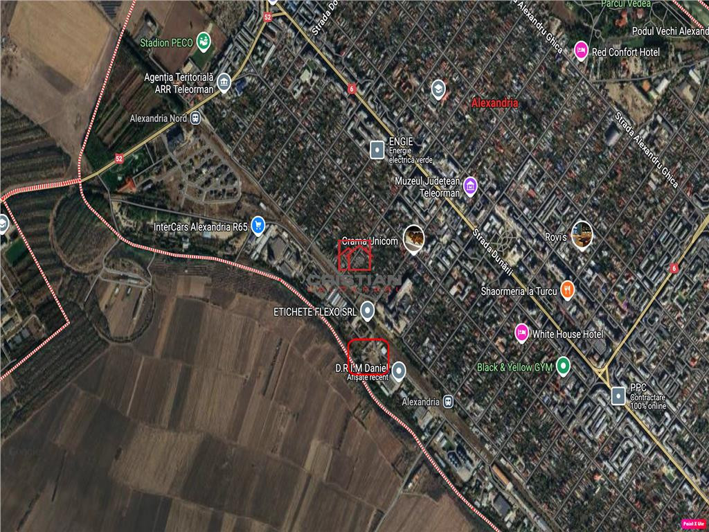 Vanzare teren Alexandria - Centura SUD, TELEORMAN. Proprietatea este compusa din teren intravilan suprafata 5.915mp, deschidere 87ml la strada asfaltata, situat in partea de sud a orasului in incinta industriala, avand o latura catre soseaua de centura sud. Terenul se preteaza pentru construire cladiri cu destinatie: industriala/logistica/depozitare, este in proportie de 75% betonat/pietruit, exista o constructie industriala cu suprafata de 375mp(demolabila/renivabila. Utilitatile sunt in zona. Pret vanzare - 415.000euro TVA COMISION AGENTIE 3%
