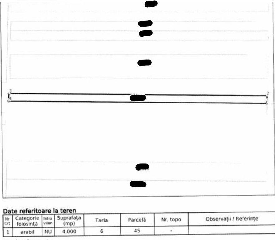 Licitatie publica teren extravilan agricol. Loc. Budesti, Jud. Calarasi,Tarla 6, Parcela 45 Suprafata teren 4000 mp Deschidere de 11 ml la drum de pamant.