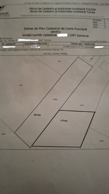 Vindem teren construibil in suprafata de 468mp, situat in sat Mineri