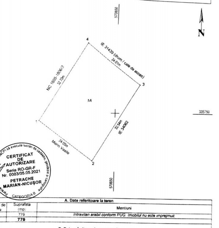Va oferim spre vanzare acest teren situat in Sabareni - Giurgiu, cu acces imediat catre Ilfov, Bucuresti, Autostrada A 0, A1, Joita, Bacu, Chitila. Terenul este intravilan, are o suprafata de 779 mp, cu 24 ml deschidere la Strada si 32 ml Adancime. Este ideal pentru cine isi doreste sa construiasca o casa sau pentru investitie-zona este in plina dezvoltare. Pentru detalii si vizionari nu ezitati sa ma contactati! Id intern: P214455
