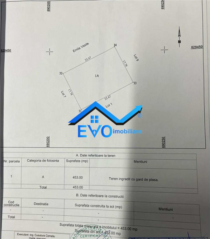 Teren intravilan de vanzare ndash; 453 mp, Miroslava, Str. Constantin Langa Evo Imobiliare va propune un teren cu potential excelent, perfect pentru constructia unei locuinte individuale sau ca investitie. Suprafata: 453 mp Deschidere: 25,47 ml la 2 drumuri POT: 35% | CUT: 1.25 | H:11 Regim urbanistic: locuinte individuale Utilitati: curent, apa si gaz in imediata apropiere Acces facil catre oras, scoli, magazine si mijloace de transport Zona rezidentiala linistita, cu vile moderne Locatie excelenta ndash; Soseaua principala Miroslava Contact: 0770931235 ID Oferta: 5615