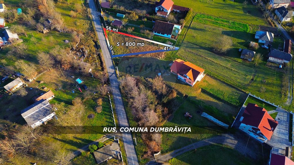DE VANZARE: Teren in Comuna Dumbravita - sat RUS Suprafata: 800 mp, 8 ari Amplasament: la strada principala Retele utilitati prezente: apa, canalizare, gaz, electricitate Pret: 14.400 Euro