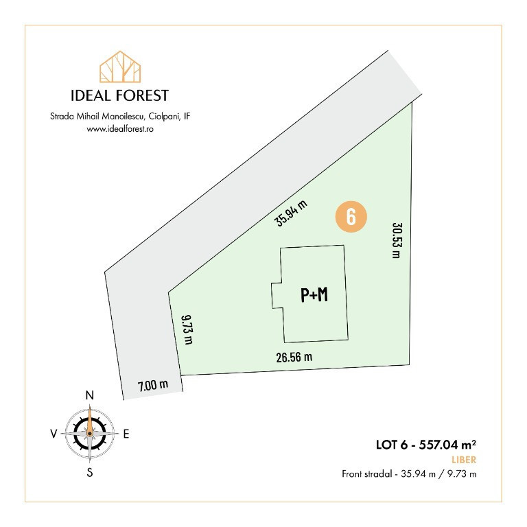 Teren de vanzare : Situată la o scurtă distanță de București, comuna Ciolpani este atractivă pentru cei care doresc să se bucure de liniște și natură, fără a renunța la facilitățile oferite de un oraș mare. Pădurea Snagov oferă oportunități excelente pentru activități în aer liber, cum ar fi plimbări, drumeții sau ciclism. De asemenea, lacul Snagov este cunoscut pentru frumusețea și posibilitățile variate de agrement pe care le oferă. Pretul afisat include canalizare si apa, lucrari efectuate la fiecare parcela doar in incinta complexului, pana la poarta si drumul la nivel de piatra concasata.Terenul se vinde cu autorizatie si proiect de casa P/P+M, taxa de autorizatie fiind inclusa. Specificații : Suprafață utilă – 557.04 m2 Front stradal - 35.94m / 9.73 m