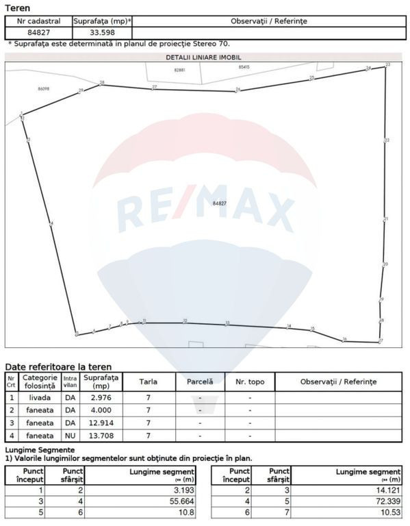 De vânzare – teren generos 33.598 mp, ideal pentru investiție, parc fotovoltaic, sau exploatare agricolă in Câmpulung cu 0% comision la cumpărare. Vă propunem spre vânzare un teren amplasat într-o zonă liniștită și ușor accesibilă, cu o suprafață totală de 33.598 mp Categoria de folosință: livadă + fâneață Intravilan: 19.890 mp Extravilan: 13.708 mp Detalii de folosință a terenului: Livadă: 2.976 mp (intravilan) Fâneață: 4.000 mp (intravilan) Fâneață: 12.914 mp (intravilan) Fâneață: 13.708 mp (extravilan) Caracteristici: Terenul este bine conturat, conform planului cadastral, având fronturi generoase și o geometrie ce permite multiple posibilități de parcelare și utilizare. Acces direct din drum, potrivit atât pentru construcții rezidențiale (case, pensiuni), cât și pentru dezvoltări de tip agroturistic sau exploatare agricolă. Suprafața compactă și diversitatea folosinței îl fac atractiv pentru cei care doresc să îmbine zona rezidențială cu activități agricole sau recreative. Avantaje: Teren situat într-o zonă cu potențial de dezvoltare, cu utilități în fata (energie electrica, gaz, apa, internet) Suprafață mare, ideală pentru proiecte de investiții. Posibilitate de parcelare și valorificare ulterioară. O oportunitate excelentă pentru cei care caută un teren cu suprafață generoasă, bine poziționat și versatil ca destinație