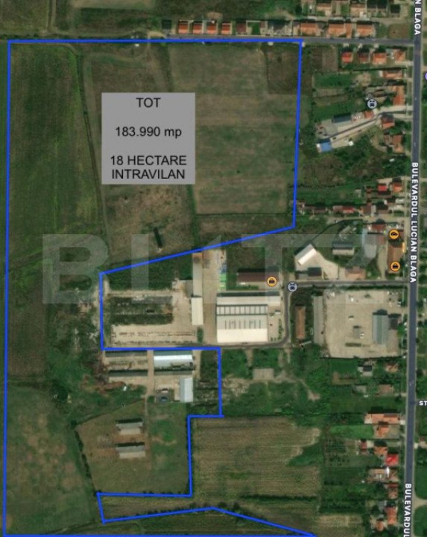 Blitz va prezinta teren intravilan on zona Lucian Blaga Suprafață teren: 183.990 mp Fronturi: 3 Deschidere 1: 50 m Deschidere 2: 12 m Deschidere 3: 60 m Utilități: toate utilitățile sunt disponibile în fața terenului Vânzare: integral sau parțial Prețuri: Teren integral: 2.000.000 Euro Min. 2 HA: 300.000 Euro Descriere: Oferim spre vânzare un teren impresionant de 183.990 mp, având trei fronturi cu deschideri de 50 m, 12 m și 60 m. Acest teren dispune de toate utilitățile necesare (apă, canalizare, electricitate, gaze) amplasate în fața sa, oferindu-vă posibilitatea de a începe dezvoltarea imediată. Terenul poate fi achiziționat atât integral, cât și parțial, în funcție de nevoile dvs. de dezvoltare. Avantaje: Suprafață generoasă cu multiple posibilități de utilizare Trei fronturi stradale, oferind acces facil și vizibilitate excelentă Toate utilitățile disponibile în fața terenului Flexibilitate în achiziție: integral sau parțial Acesta este terenul ideal pentru dezvoltatori imobiliari sau investitori care doresc să profite de o locație strategică și de toate facilitățile necesare. Nu ratați această oportunitate unică! Pentru mai multe informații și pentru a programa o vizionare, vă rugăm să ne contactați. Cod ofertă / ID BLITZ: P127459 Id intern: P127459