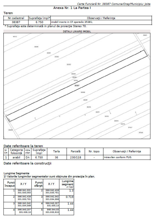 Ofer spre vanzare un teren intravilan cu o suprafata de 11.350 mp si cu o deschidere de 28.85 mp. Zona este una in continua dezvoltare, respectiv Joita-Giurgiu (aveti atasate imagaini din satelit); o zona favorabila pentru spatii industriale, hale, etc: ex in apropiere sunt halele Emag. Pretul pe mp 25 euro negociabil.