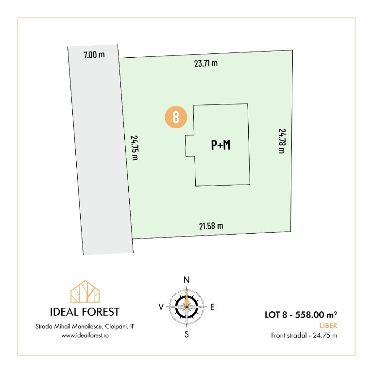 Vă oferim o oportunitate unică de investiție pe un teren situat în Izvorani,cu deschidere la padurea Snagov,cu proiect de casa pe parter. Suprafață totala a terenului este de de 21774mp. Acesta este parcelat in 35 de loturi. Loturile au suprafete cuprinse intre 407 si 730 mp, avand destinatia de teren curti constructii. Oferim spre vanzare lot 8 in suprafata de 673,94mp, front stradal 24,75m , la pretul de 42762 euro + tva. Se vinde cu autorizatie si proiect P/ P+ M. Pretul afisat include canalizare si apa, lucrari efectuate la fiecare parcela doar in incinta complexului, pana la poarta si drumul la nivel de piatra concasata. Acest teren are un potențial extraordinar, oferind posibilitatea unor constructii intr-o zona linistita,in continua dezvoltare, in jur aflandu-se la momentul actual si alte proprietati. Toate utilitatile la strada principala (curent,gaze, canalizare ) făcând din acesta o alegere excelentă pentru viitoarea dvs. locuință Cu o locație excelentă , este pregătit pentru a deveni baza unei investiții de succes. Pentru vizionari, oferte si alte detalii, puteti accesa site-ul .idealforest.ro sau telefonic.