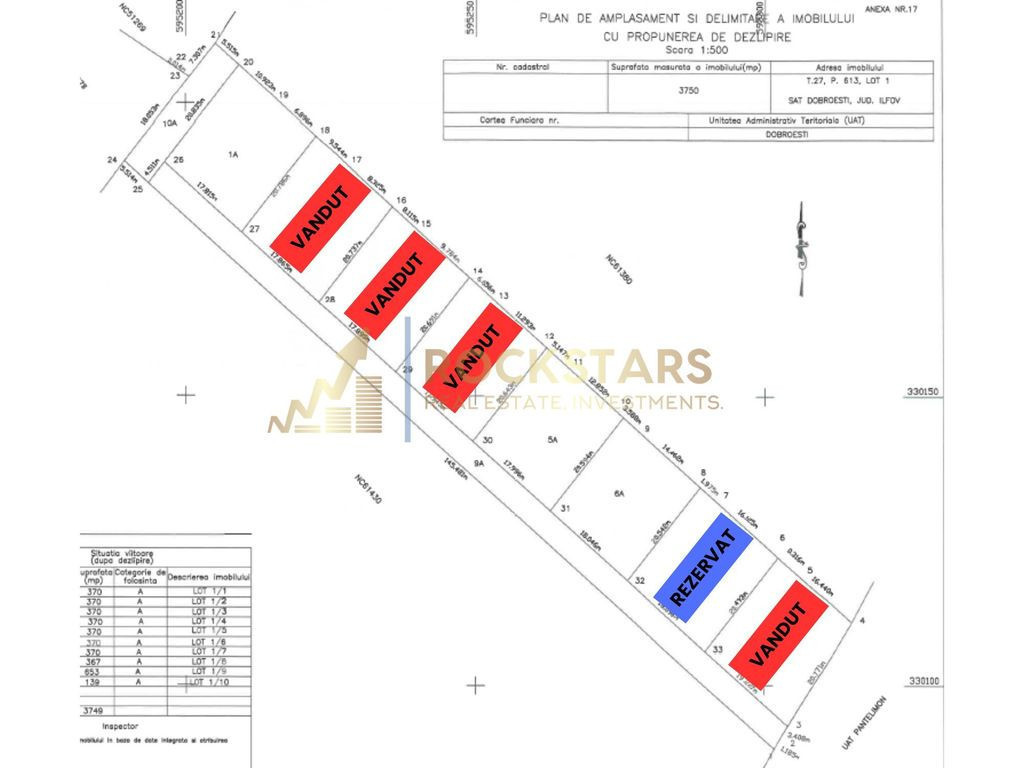 Terenuri 370 mp – Dobroesti Daca visezi la locul perfect pentru casa ta, unde sa ai liniste, dar sa ramai aproape de oras, aceste loturi din Dobroesti pot fi exact ce cauti. Sunt situate la doar 1 km de Penny, pe granita dintre Pantelimon si Dobroesti, pe strada paralela cu Bulevardul Nordului, intr-o zona in continua dezvoltare, cu acces rapid catre Bucuresti. Terenul este format din 8 loturi de cate 370 mp, din care mai sunt disponibile 4. Urbanismul permite constructii P+2+M, ceea ce ofera flexibilitate atat pentru locuinte individuale, cat si pentru proiecte de tip duplex. ???? Localizare excelenta – la doar cativa pasi de oras ???? Zona linistita, ideala pentru rezidenta permanenta ???? Regim urbanistic: P+2+M O optiune excelenta pentru cei care isi doresc sa construiasca casa mult visata, intr-o zona accesibila si in plina crestere, la doar cativa pasi de Bucuresti. Disponibilitati: Lotul 1A - dubla deschidere – 46.000 euro Lotul 5A - 44.400 euro Lotul 6A - 44.400 euro Lotul 7A - 44.400 euro